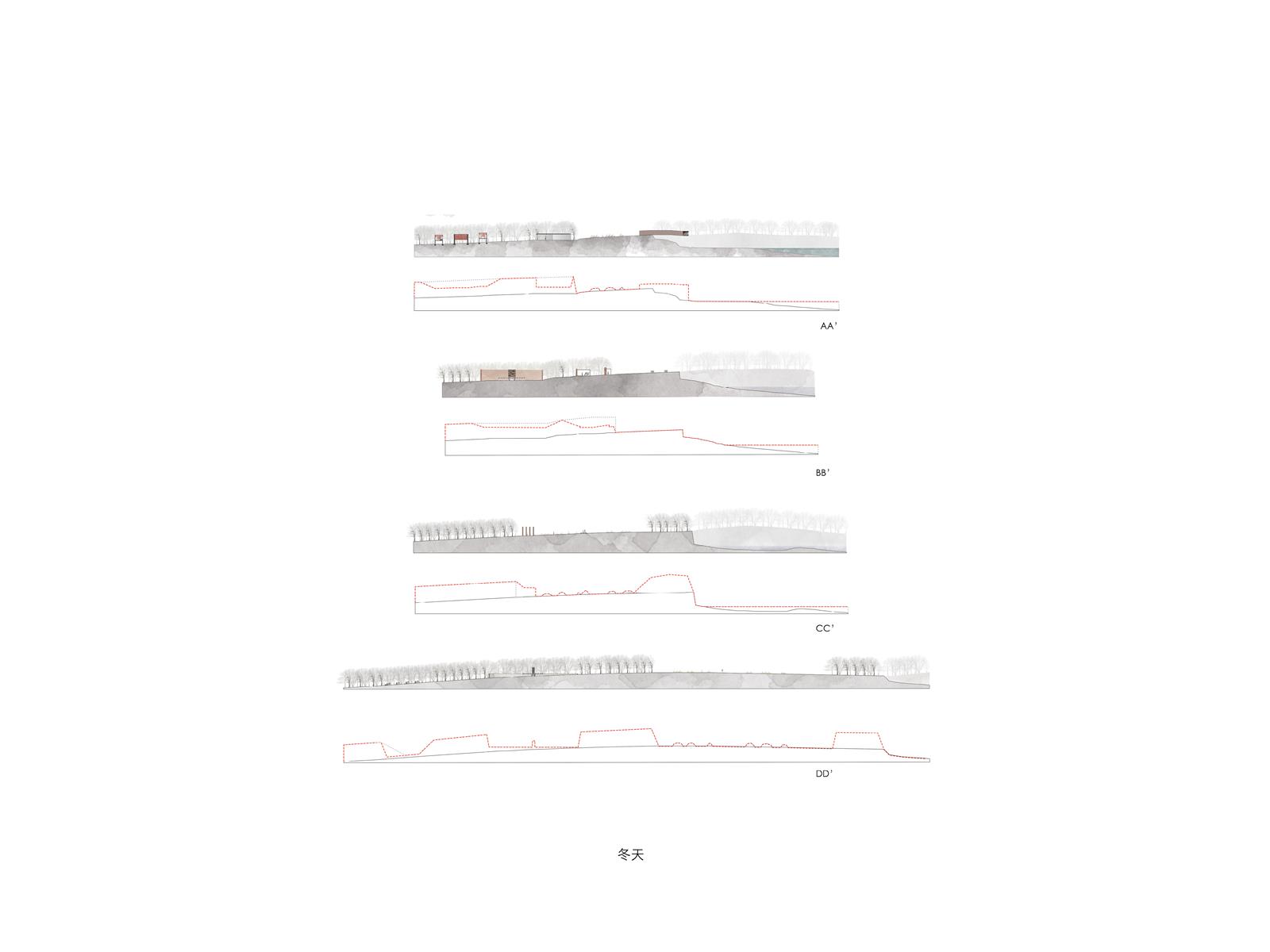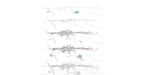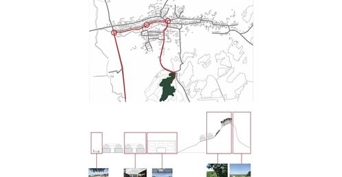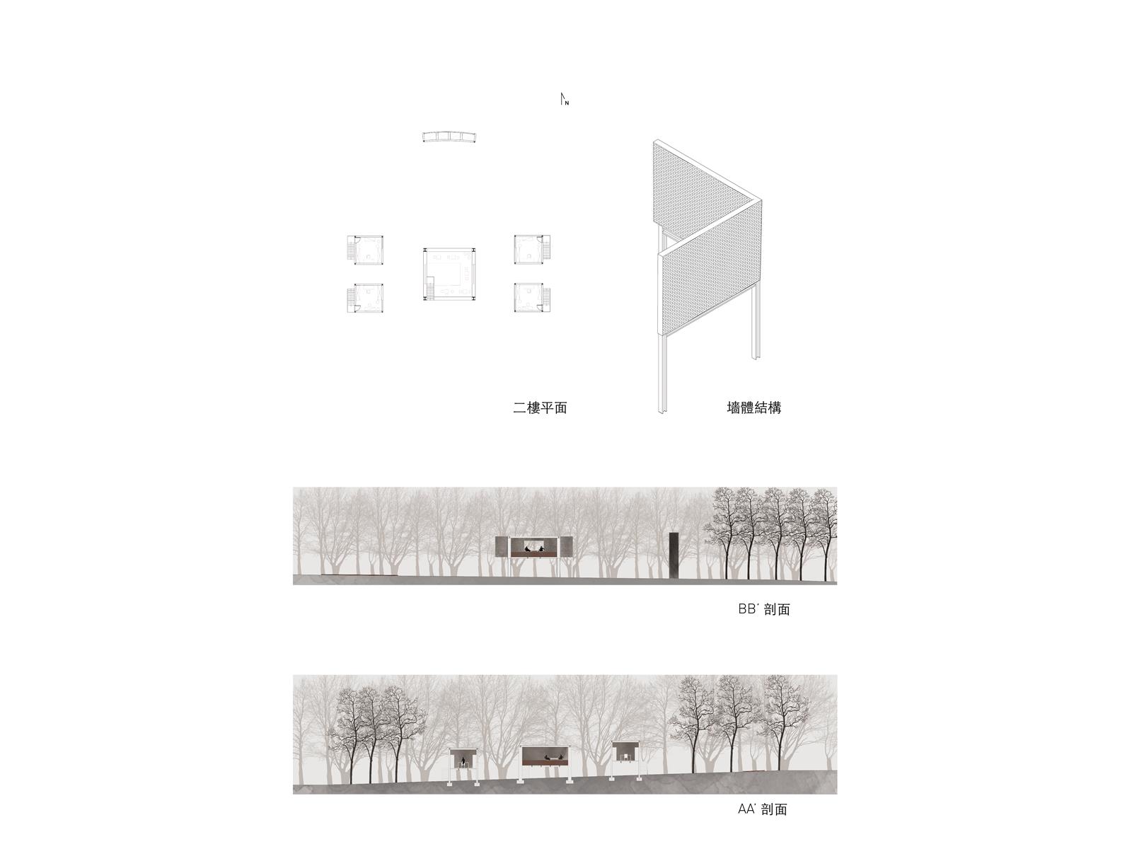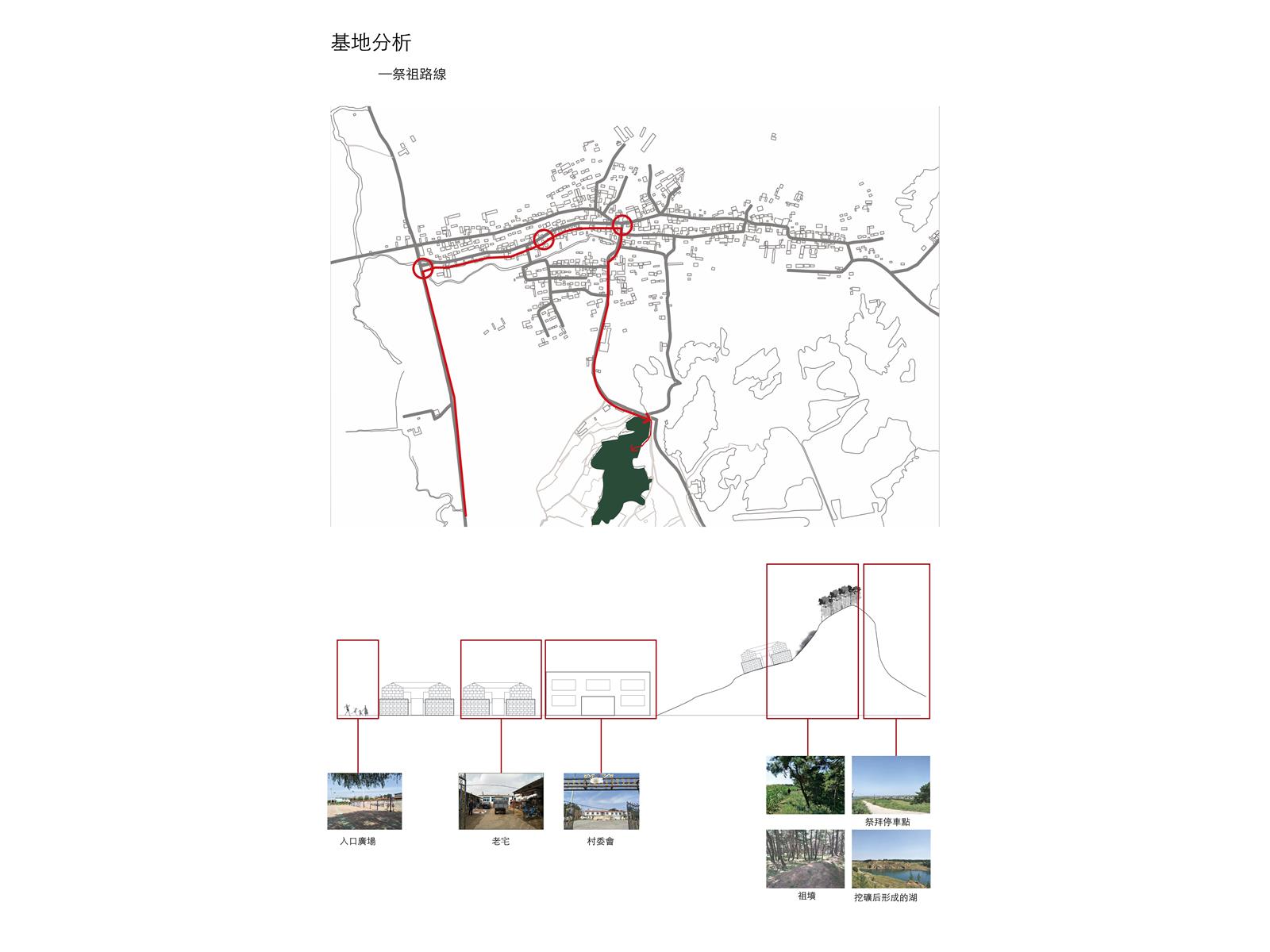 設計在家族墓地這個活的墓裡置入城市機能服務空間,形成一個新的界面,界定墓地與未來城市,進而保護村莊。