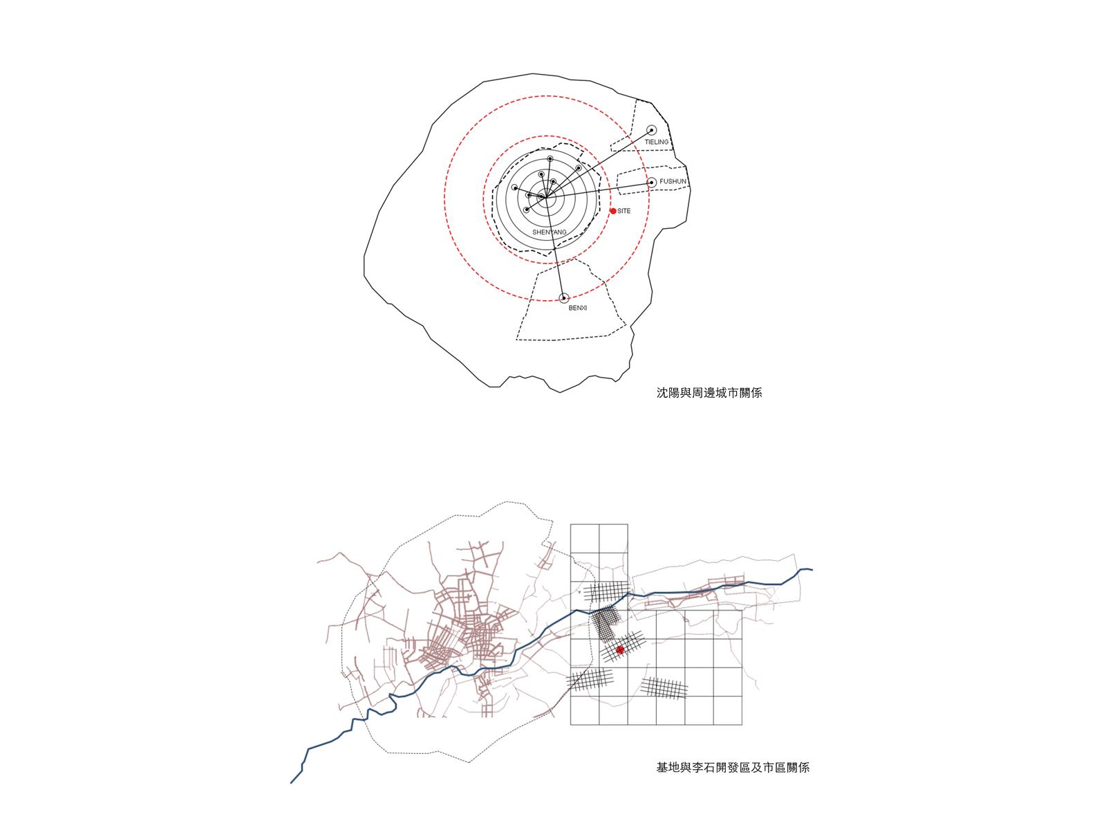 金德勝村原本是瀋陽市和撫順市的邊界。因為沈陽的“直轄市計劃”,撫順和周邊兩個城市與沈陽合併,基地這個城市的邊界即將變成城市中心。為了實現這個計劃,基地北側的村莊更新成為經濟開發區。而如今,這個開發區因為不適合城市的發展,變成了鬼城。