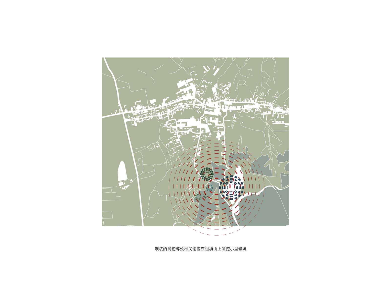 礦坑的形成,使得墓地外圍有了一個村莊的工業入口,工業行為逐漸侵蝕村莊。政府想將礦山夷為平地,用公墓換家族墓地的方式來安撫我們。對於我們來說,公墓是死的墓,家族墓地是活的墓。
