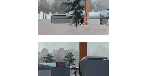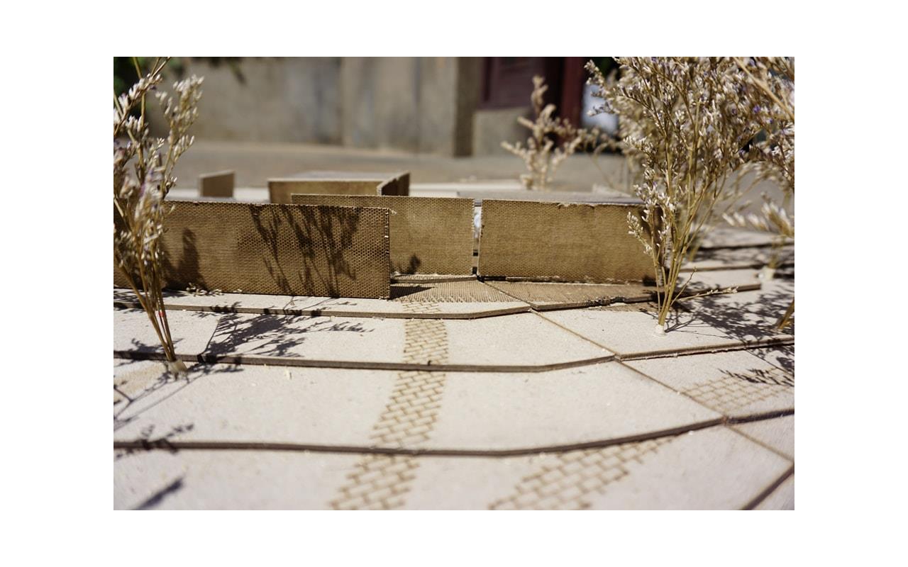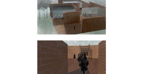 用磚墻象徵村莊與傳統文化,用鋼構代表工業社會的城市。用結構變化討論村莊與城市的生存死亡關係。「生理死亡空間」的構造為磚造支撐鋼構,磚造為結構。「身份死亡空間」的構造為鋼構支撐磚墻,鋼構為結構。「記憶死亡空間」的構造為純粹磚造,回歸傳統技法。在材料與空間變換中,使得後代子孫思考前人的意義。