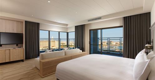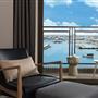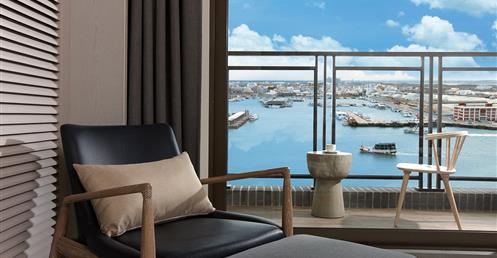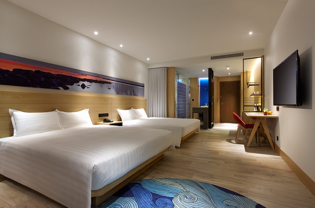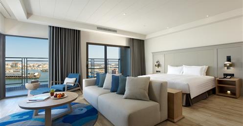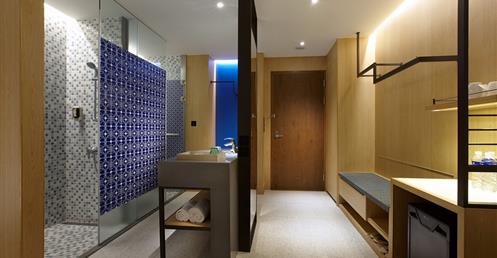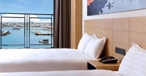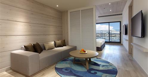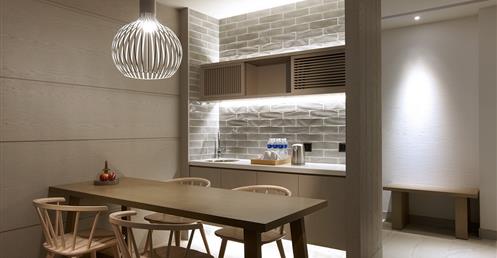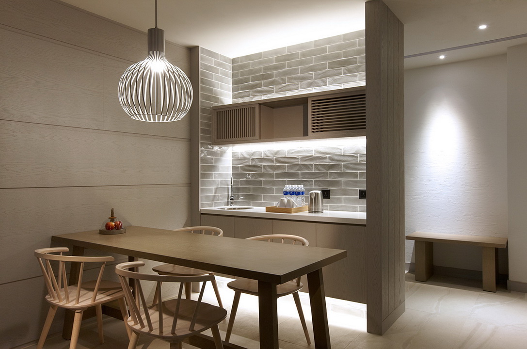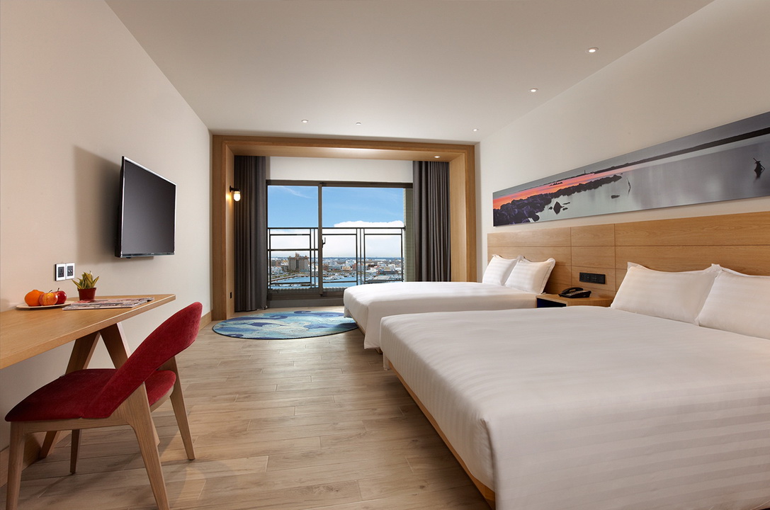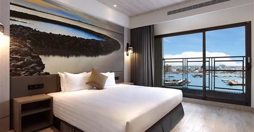 擷取當地的漁業元素及具時代性的裝飾窗稜格柵,搭配海洋色調的軟件及清爽的木材質,讓人即使在室內也有沉浸蔚藍海的沁涼,而客房也延續整體概念,於簡約舒適的空間中點綴在地人文元素,大片落地窗讓人盡覽菊島風情之外,也框出明信片般的美麗畫面。