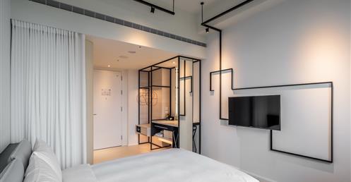 飯店建築樓高12層規劃出170間精緻舒適客房、藝文展覽空間及義式餐廳,以「藝廊」概念規劃整體空間,簡潔的白色為主軸,黑色鐵件結合之燈束光源畫出了支線,從大廳、客房、餐廳及廊道定位出多元功能的美學場域,除此之外更應用飯店資源突破建築的空間界線,搭配草悟道周邊藝術與在地人文交流特性,提供不同主題展覽與活動運用,讓更多藝術、設計創意人能在這個場域匯聚出多變豐富的藝文能量,傳達台中這座城市無限的創意與想像力。