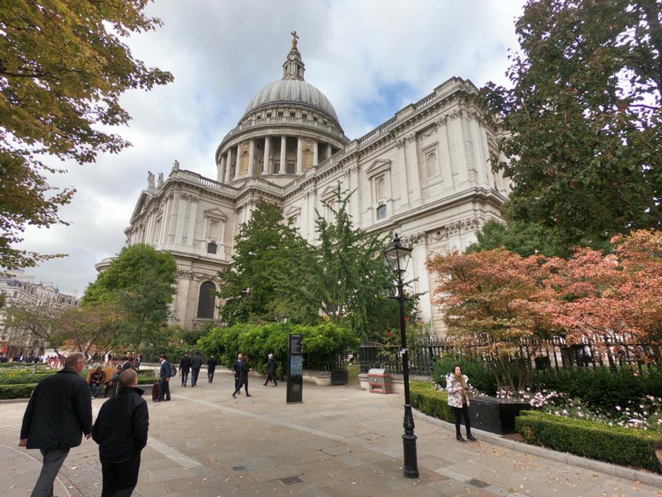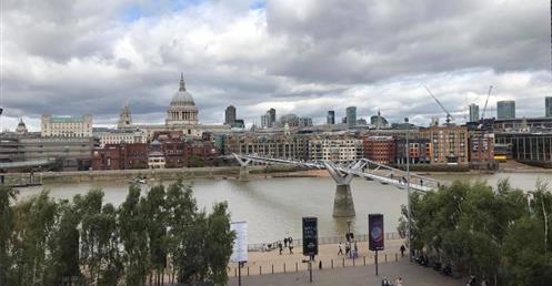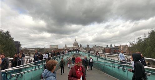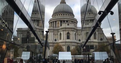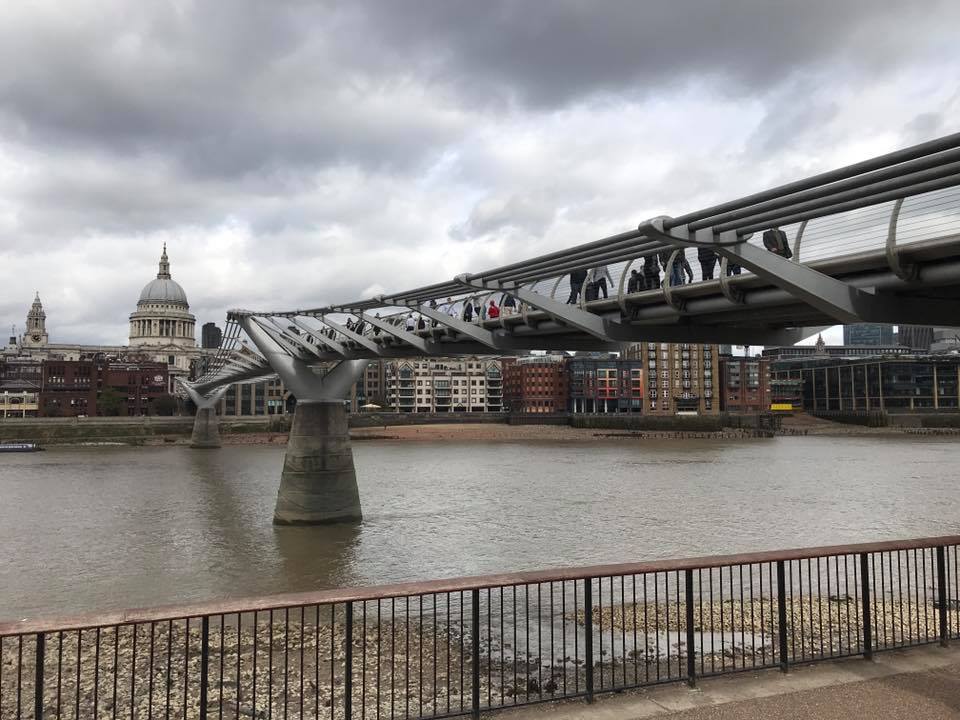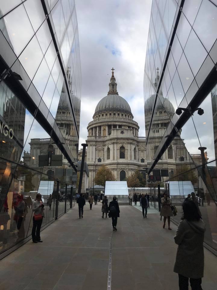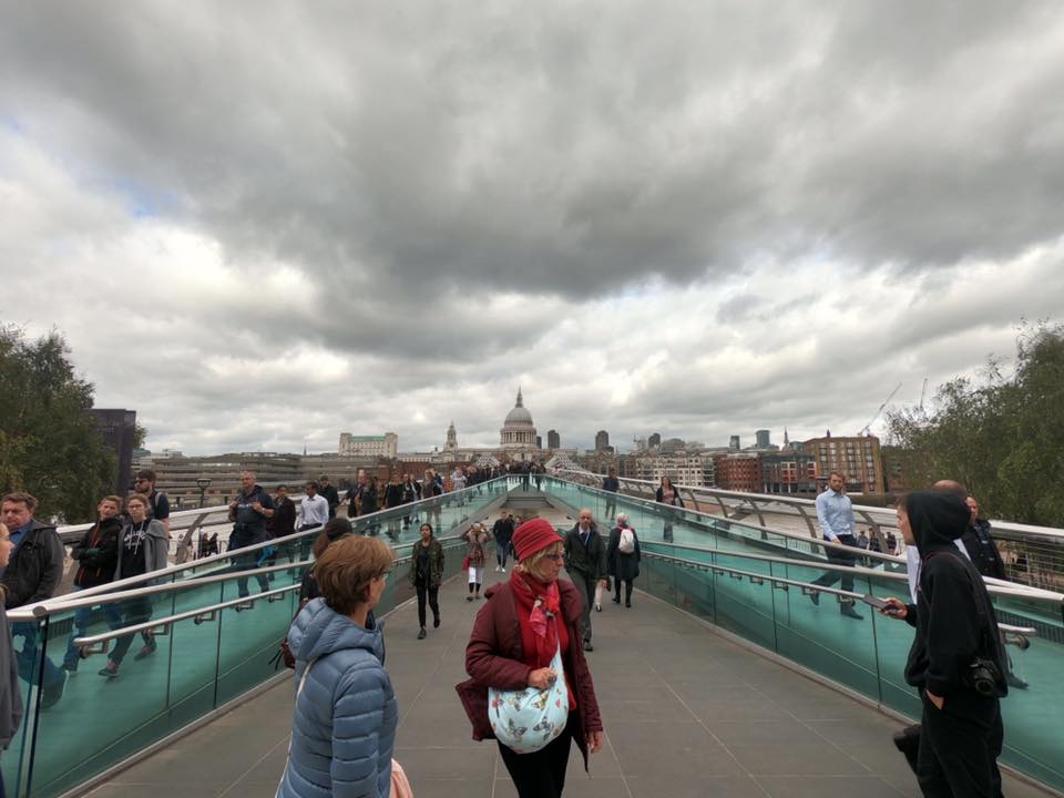 倫敦day2,一早我們就先到聖保羅大教堂,因為聽說有多難排隊,結果到現場也還好啊,安檢一下就進去買票,可惜內部不能拍照,不過說實話,看過幾個歐洲厲害的教堂之後,也覺得還好啦,就差不多是這樣,不過不能拍照的好處就是大家都會認真聽解說,在裡面確實也可以感受到宗教想要帶給人們的莊嚴感,在如此高挑的空間內,很難不覺得人很渺小,但是又會驚嘆於人的智慧結晶。登上圓頂後還可以尋階而上,可以到屋頂欣賞周邊景色,尤其隔著千禧橋的泰特現代藝術館,也是我們下一個目標。
