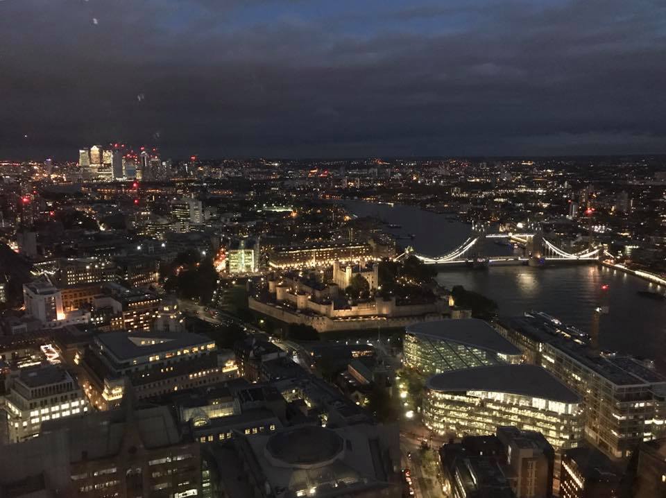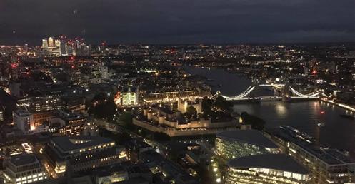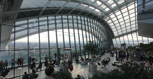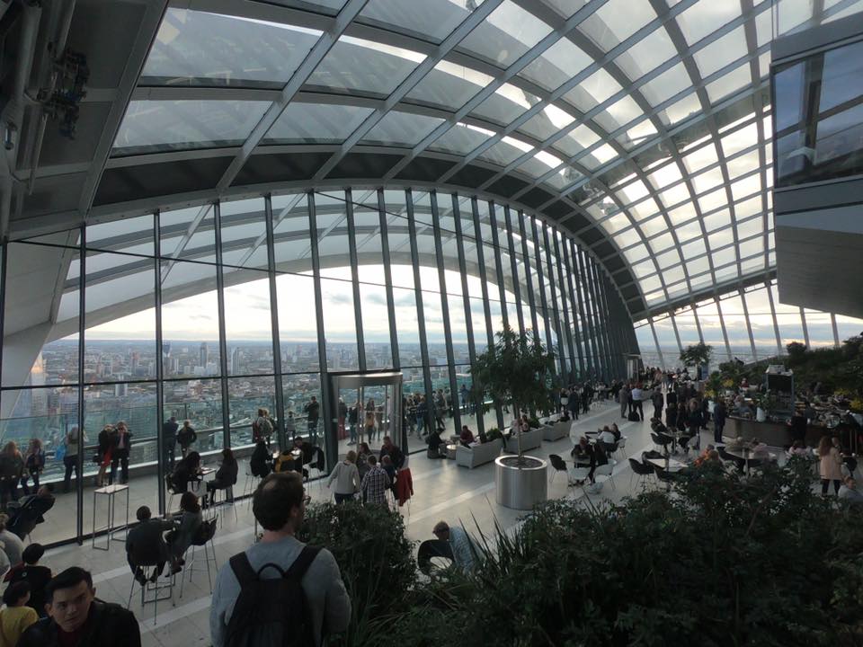 午晚餐就近到博羅市場解決,Arabica Bar & Kitchen是家黎巴嫩餐廳,亂點一通都很好吃,感覺來英國最安全的餐廳就是中東菜了。接下來是要到Sky Gardan賞景,路過The shard(碎片大樓,英國第一高樓)及倫敦大火紀念碑(紀念1666年倫敦大火),到達暱稱對講機大樓樓下安檢後直達35樓,目前是全歐最高的空中花園,裡面植物被照顧得挺不錯的,又是環景玻璃窗設計,可以欣賞360度的倫敦市景,我們特意預約接近黃昏的時候,希望可以一次欣賞到日景、黃昏及夜景,比較可惜是當天雲層很厚,光線相對不足,照片的效果就差強人意,我們硬是等到七點多看過癮了才離開,前頭的Bar已經跟我們來時不同,可以看到許多人在此小飲聊天,反而是我們這些觀光客顯得有點格格不入。