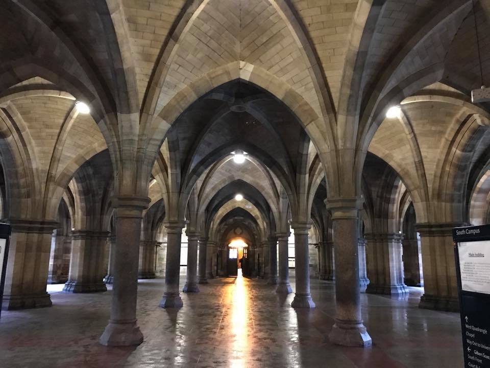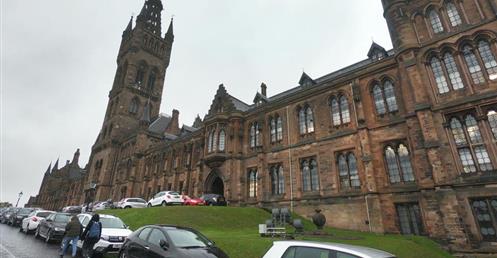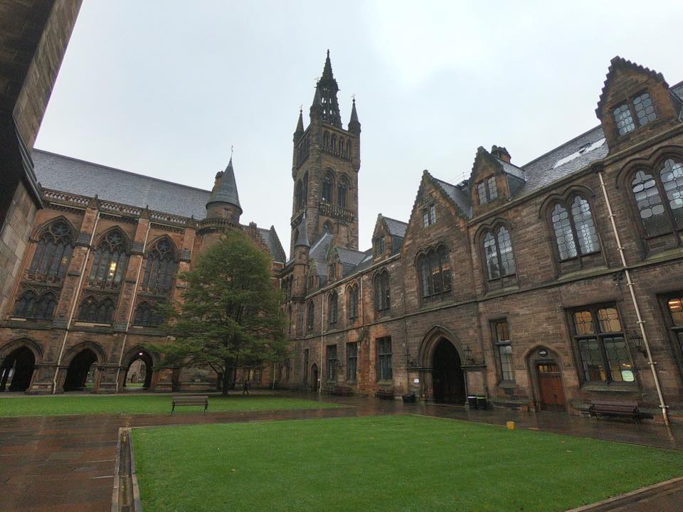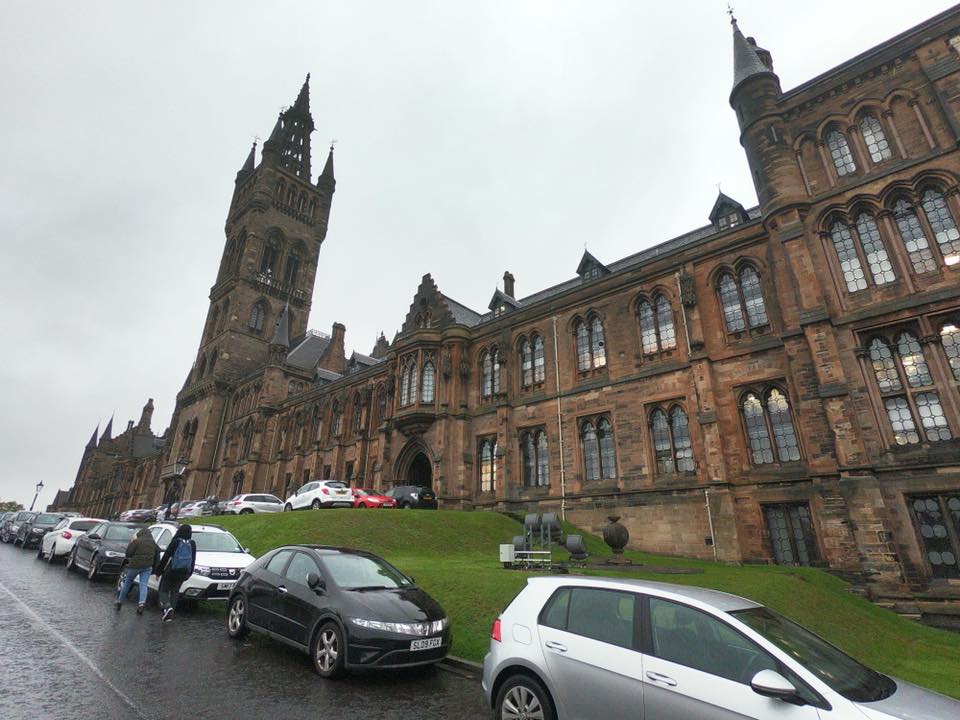 飯店附近即是Glasgow大學,也是麻瓜鄒欣樺最想要去的地方,Glasgow 大學不管是建築、歷史、知名校友、學術研究等都有相當地位,知名校友著有國富論的Adam Smith 與改良蒸汽機帶動工業革命的瓦特,兩位亦是20鎊與50鎊紙鈔上的人物,可見其在歷史上的重要性。