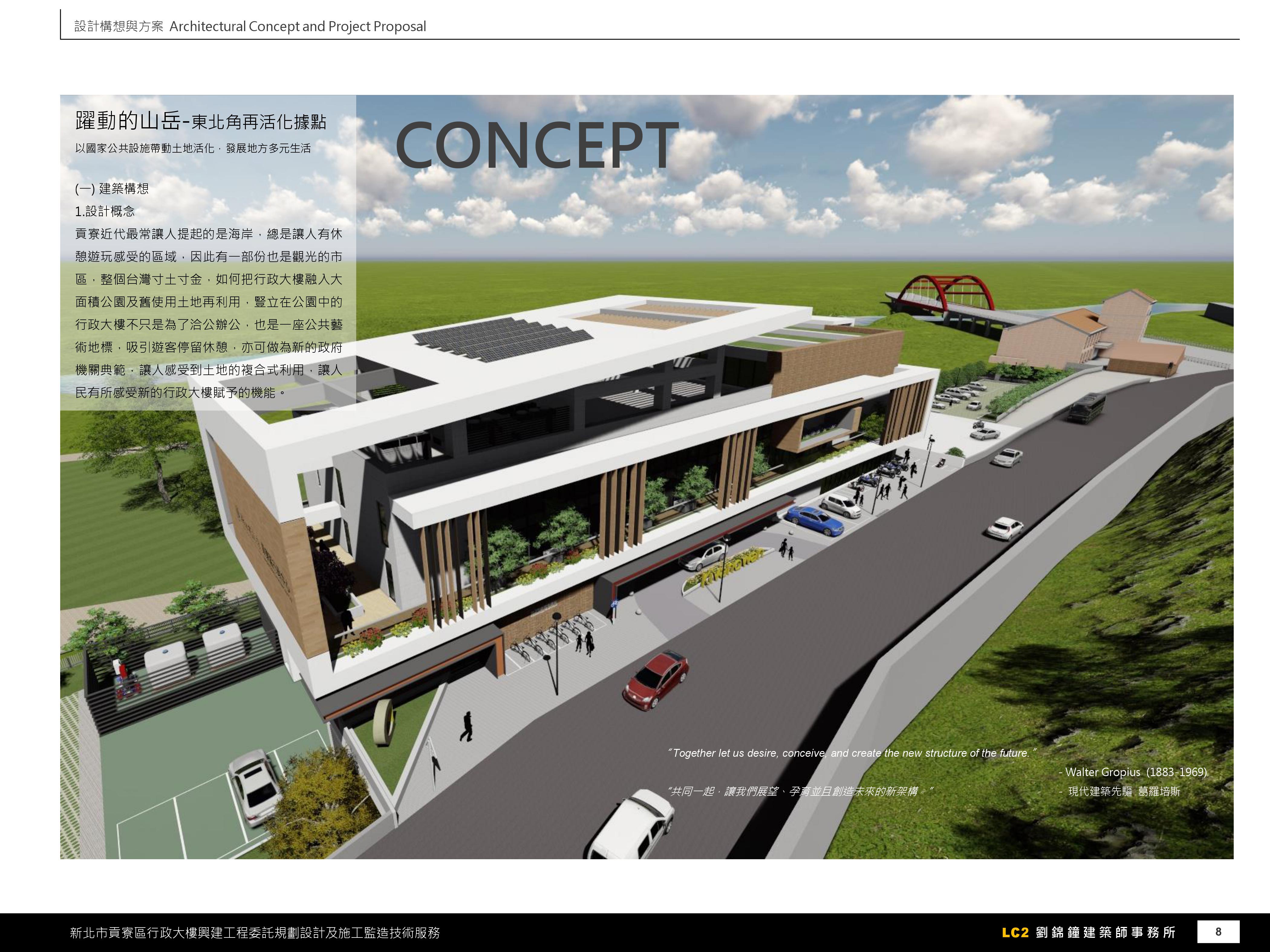貢寮近代最常讓人提起的是海岸,總是讓人有休憩遊玩感受的區域,因此有一部份也是觀光的市區,整個台灣寸土寸金,如何把行政大樓融入大面積公園及舊使用土地再利用,豎立在公園中的行政大樓不只是為了洽公辦公,也是一座公共藝術地標,吸引遊客停留休憩,亦可做為新的政府機關典範,讓人感受到土地的複合式利用,讓人民有所感受新的行政大樓賦予的機能。