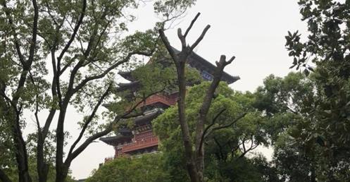 後來歷經宋、元、明、清,滕王閣歷次興廢,先後修葺達28次之多,唐代五次、宋代1次、元代2次、明代7次、清代13次,建築規制也多有變化。1926年滕王閣再度毀於軍閥混戰,贛軍師長岳思寅下令火燒南昌城外,大火延燒三日,街巷盡成焦土,1927年縱火者岳思寅等被處以死刑。直到1985年按照梁思成繪制的《重建滕王閣計劃草圖》重建,於1989年10月8日建成。成為南昌市的標誌性建築之一。新樓為仿宋朝木結構樣式,淨高57.5米,共九層,採用宋朝樓閣「明三暗七」格式。其中明層皆有迴廊可俯瞰贛江景色。樓體為鋼筋混凝土建成,南北有迴廊連接著「壓江」、「挹翠」兩個輔亭。建築面積13000多平方米。