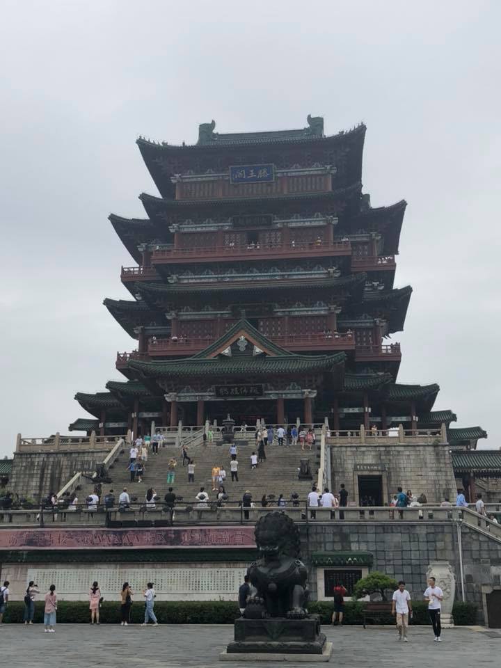 滕王閣座落於南昌市西北,贛江東岸。始建於唐永徽四年。為當時任洪州都督的唐高祖李淵之子李元嬰所建。據記載,李元嬰於永徽三年遷任蘇州刺史,調任洪州都督時建此閣以為別居。由於李元嬰封號為「滕王」,故名滕王閣。王勃就是於此時寫下了其代表名篇《滕王閣序》。並由此令滕王閣名揚四海。韓愈在《新修滕王閣記》中讚道:「愈少時則聞江南多臨觀之美,而滕王閣獨為第一,有『瑰偉絕特』之稱。」清代詩人尚鎔《憶滕王閣》詩云:「天下好山水,必有樓臺收。山水與樓臺,又須文字留。」