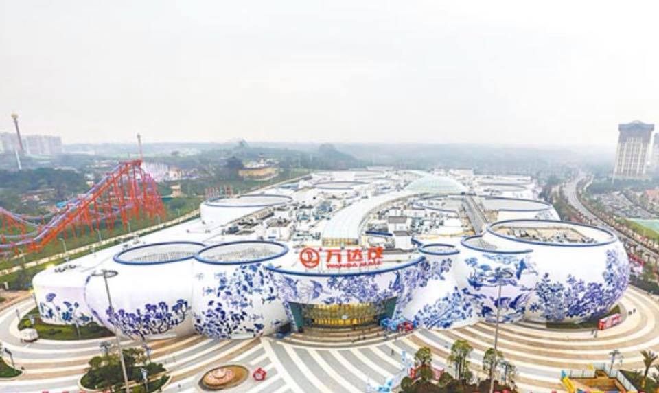 萬達茂購物商城是世界最大青花瓷建築群,於2016年5月28日開業,整個外觀是青花瓷造型,亦為江西景德鎮陶瓷特色。由英國著名設計公司Stufish負責造型設計,景德鎮陶瓷學院陶瓷美術學院院長何炳欽先生,負責青花瓷紋飾設計,彰顯了中國悠久的瓷文化。整個萬達茂由26個青花瓷罐組成,總共44,243塊瓷片組成巨大的青花幕墻,將海洋館、商業中心與電影科技樂園等多重娛樂項目整體納入其中,最大特點,應該是充分融入江西地方元素,完整體現江西贛瓷文化特色。