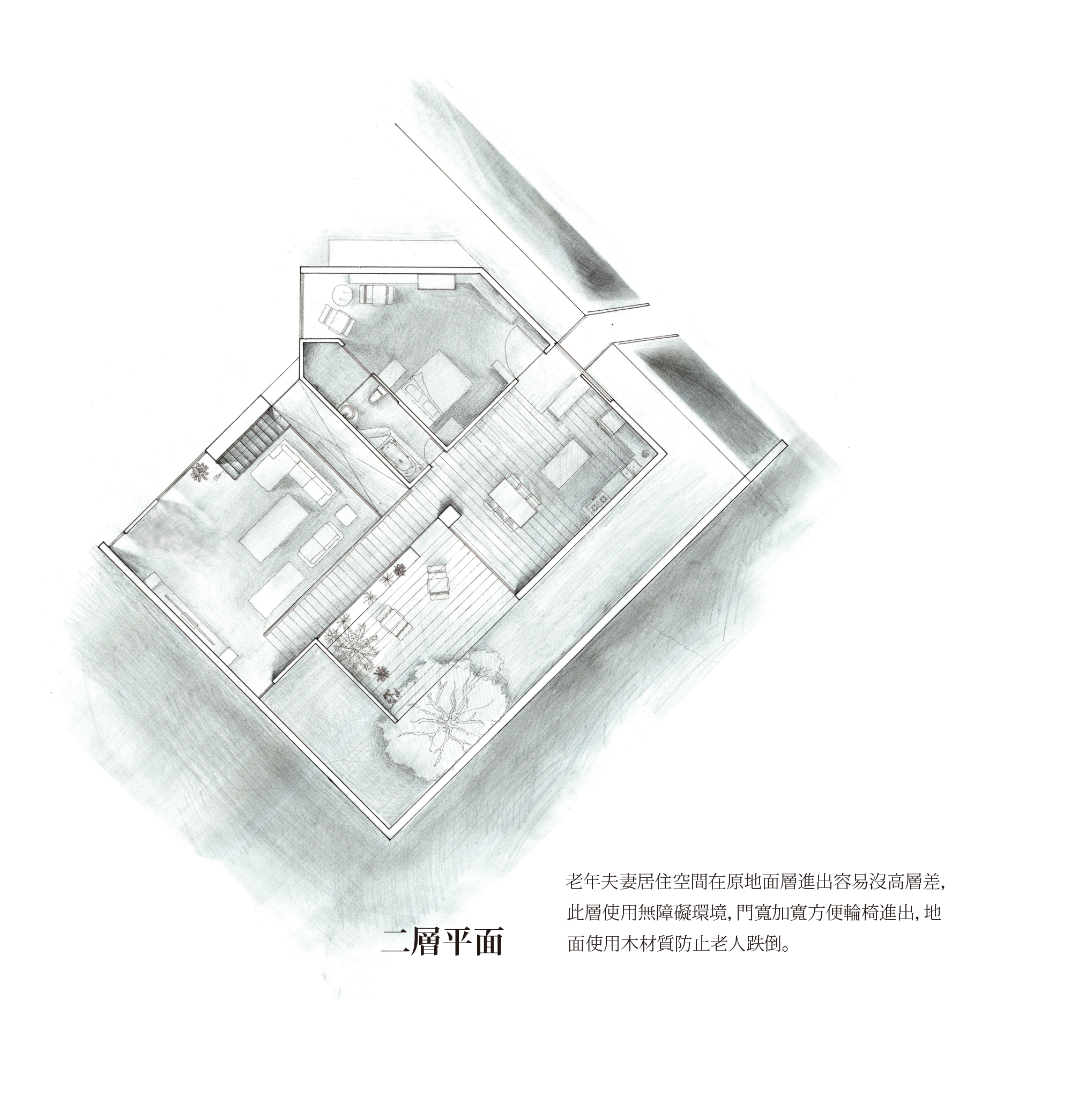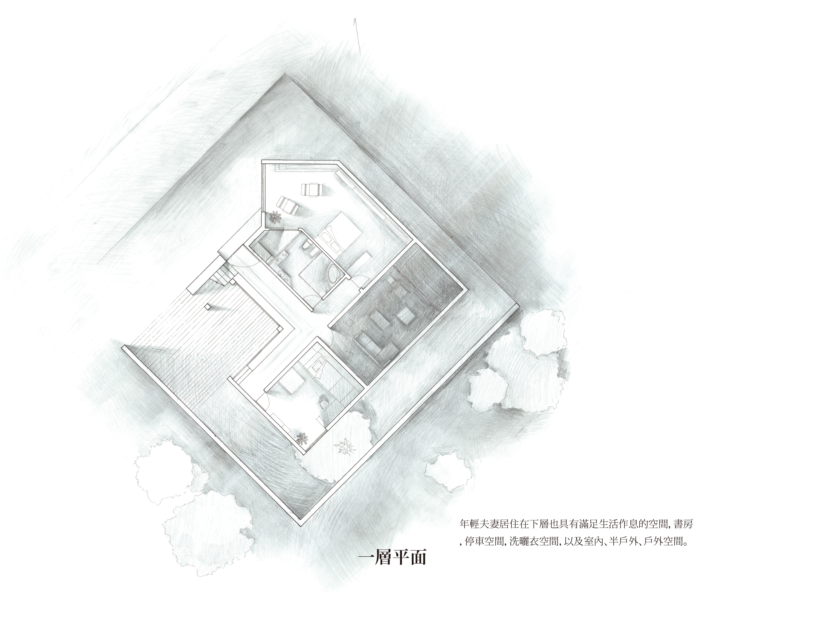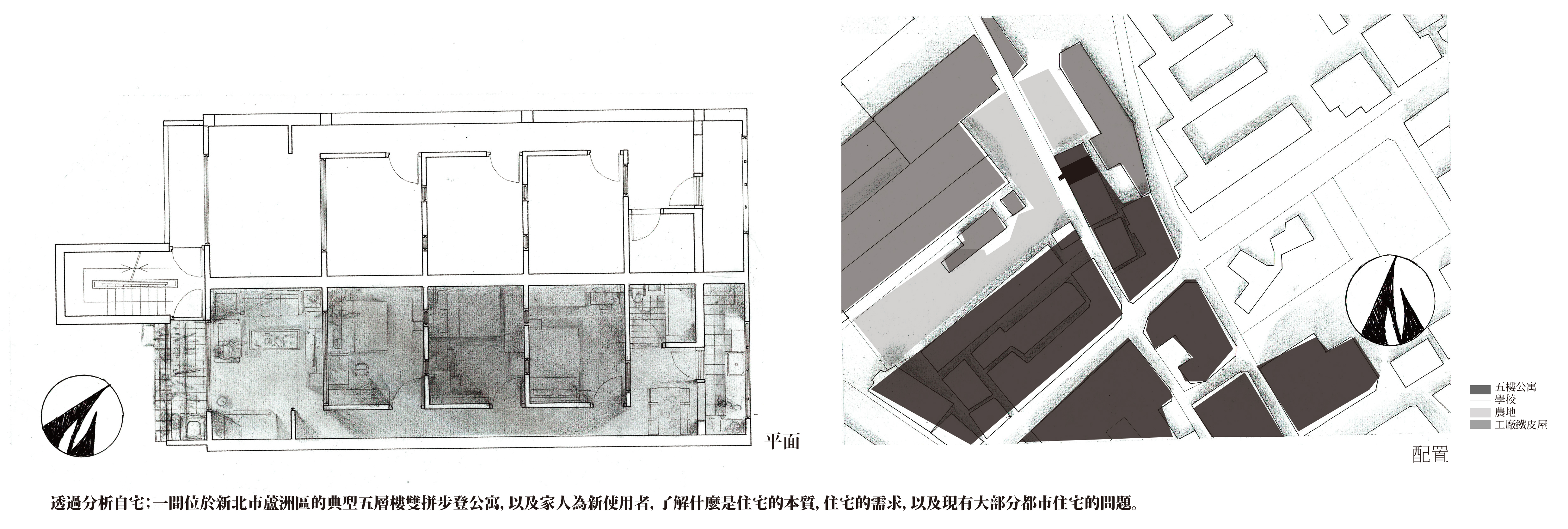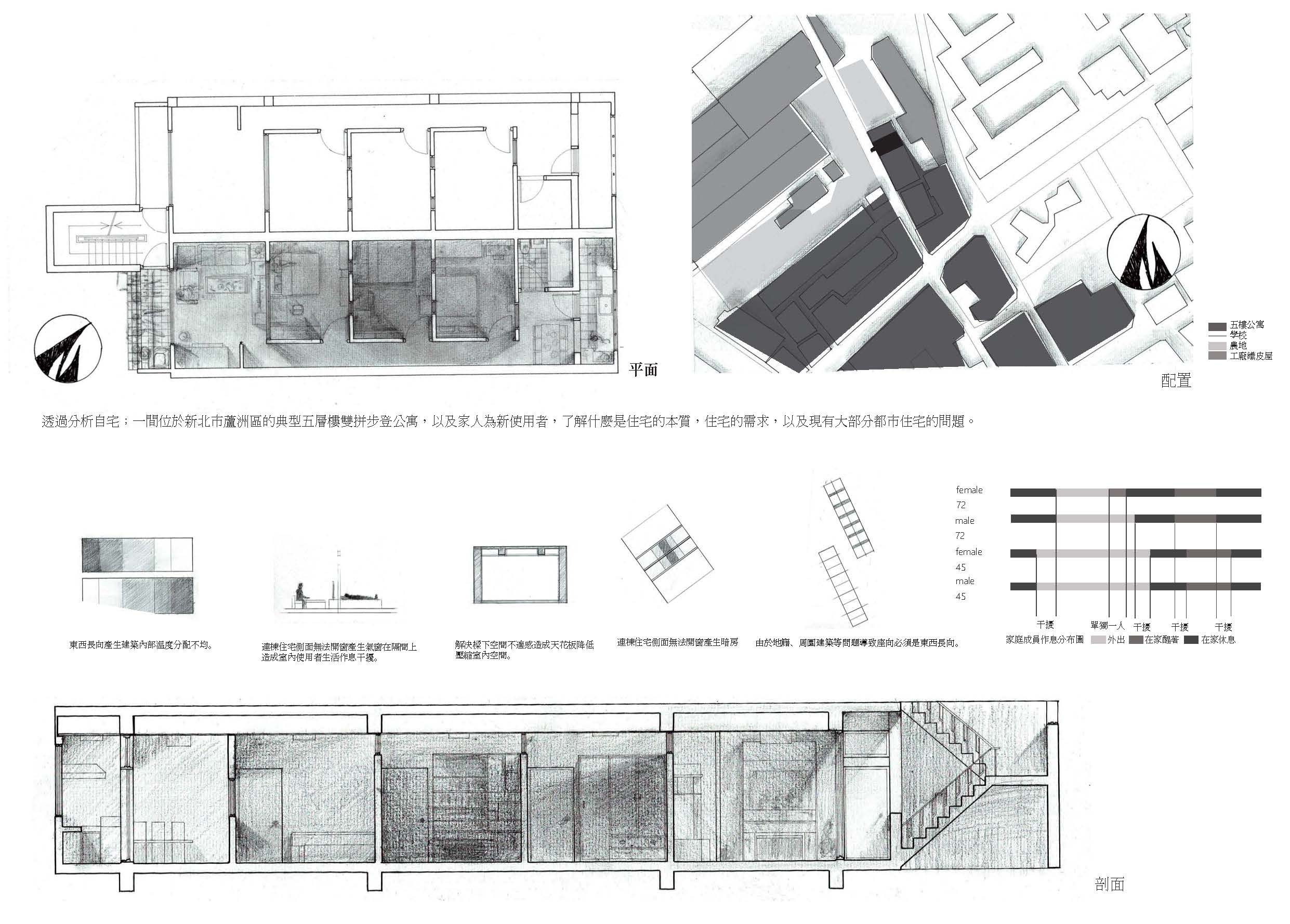 The site of this design is based on the architect Mr. Wang ’s renovation project on one of the large and small Houses of Wind, and it is located in Baoshan Township, Hsinchu. Topic of this design: develop a design based on personal inspiration from the renovation project and own residential experiences.