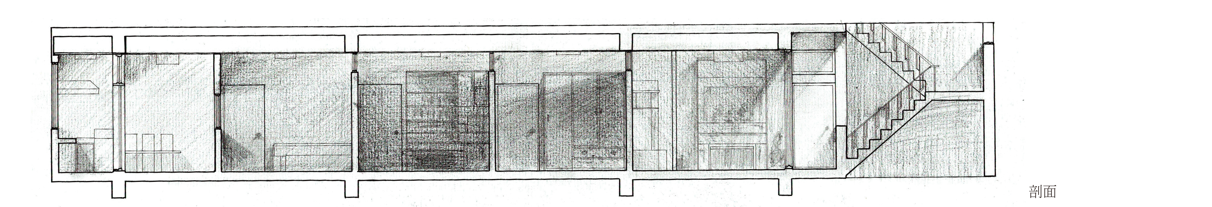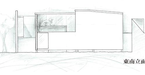This site is located on the slope of a hill in Baoshan, Hsinchu. In winter it blows humid and bone-chilling northeast monsoon, or called September wind in local dialect, from the top of hills. Therefore, the way that architecture exists in this kind of terrain becomes very important. It is definitely not sustainable to confront the nature with tough attitude. I press the wind-facing side of the house to a lower angle so that the wind would be directed through the top of the slope-like structure. In this way the concern of September wind would disappear for user. In fact, the side effects brought by the windy weather aren’t necessarily all troublesome. Wind can be directed into the house through well-thought arrangement of walls to create different functions, such as blowing away the cooking fumes in the kitchen or increasing ventilation for the clothes rack area. This space is on the slope. A big issue for the houses on the slopes in Taiwan is humidity. Moreover, putting the structure in the land would require designer’s attention on this issue of humidity even more. All these are linked to my thought at the very beginning: what should be the appearance of a building on the land? Because of the factor of human existence, the architecture cannot be totally influenced by the land. Architecture exhibits the way of existence of land but it is not the land itself. Therefore, I designed an interface separated from the house to respond to the land.