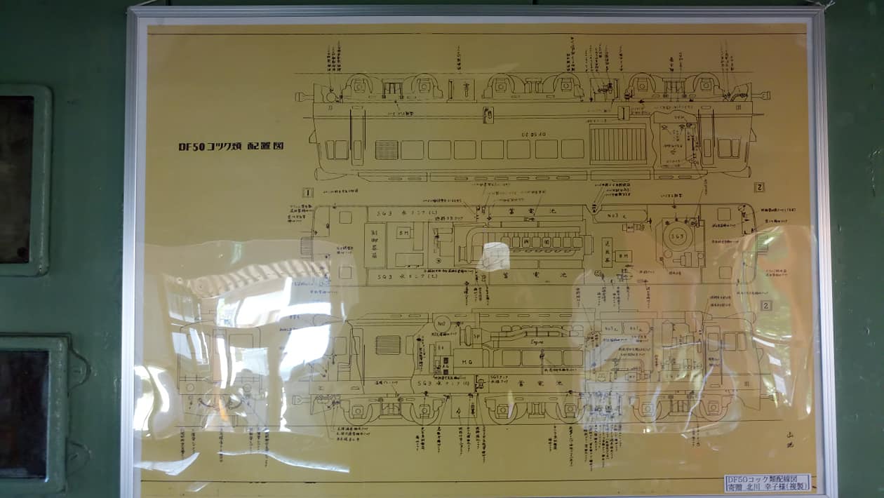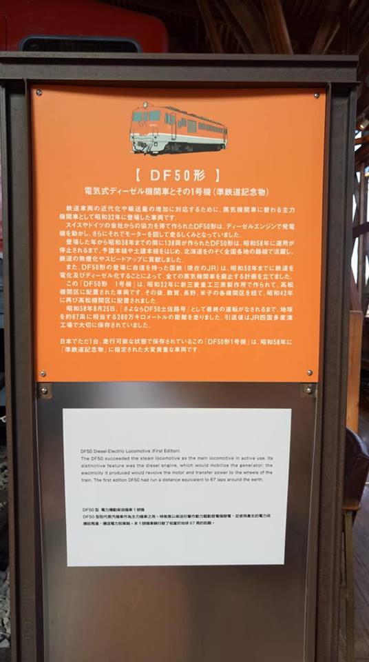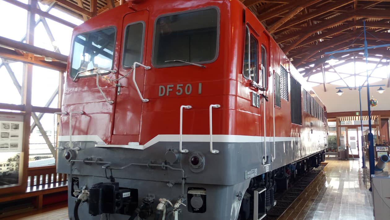 展示的DF50型柴油機車是珍貴的「1號車」,此車輛被指定為「準鐵道紀念物」。