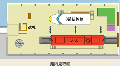「北館」展示著2輛車頭,一輛是1964年新幹線開業時登場的新幹線0系,另一輛則是主要在四國行駛的DF50形式柴油機車。
