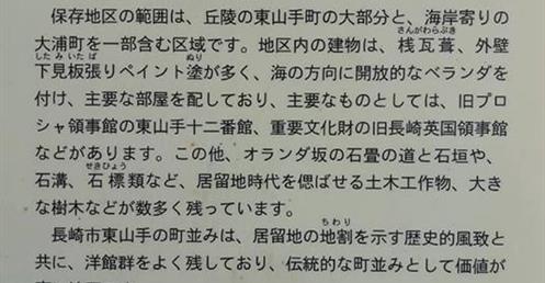 與日本最早的女子學校「活水女子大學」相連的東山手荷蘭坡在19世紀末時,是外國人居住地,鎖國時期只有出島的荷蘭人,到了開國後,長崎人就將東方人以外的人統稱荷蘭人,這裡是各國領事館設置的區域,所以就被稱作荷蘭人通行的坡道「荷蘭坡」。如今依然可以看到幾棟保存著昔日風貌的洋樓,是長崎最具代表性的異國風景點。坡道以石板打造,和周邊的洋風建築十分契合,下雨天的石板路更是別有氣氛。http://www.nagasaki-tabinet.com.tw/viewpoint-content.aspx?Area_Class_id=4&Viewpoint_id=13