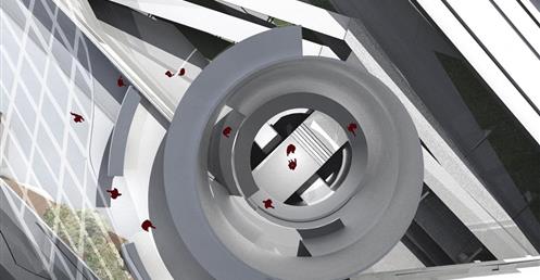 為了增加並讓人能夠在不自覺的情況下觀察環境,在建築中,我認為當意識到空間轉換的同時最能重新審視一個空間,設計中使用了