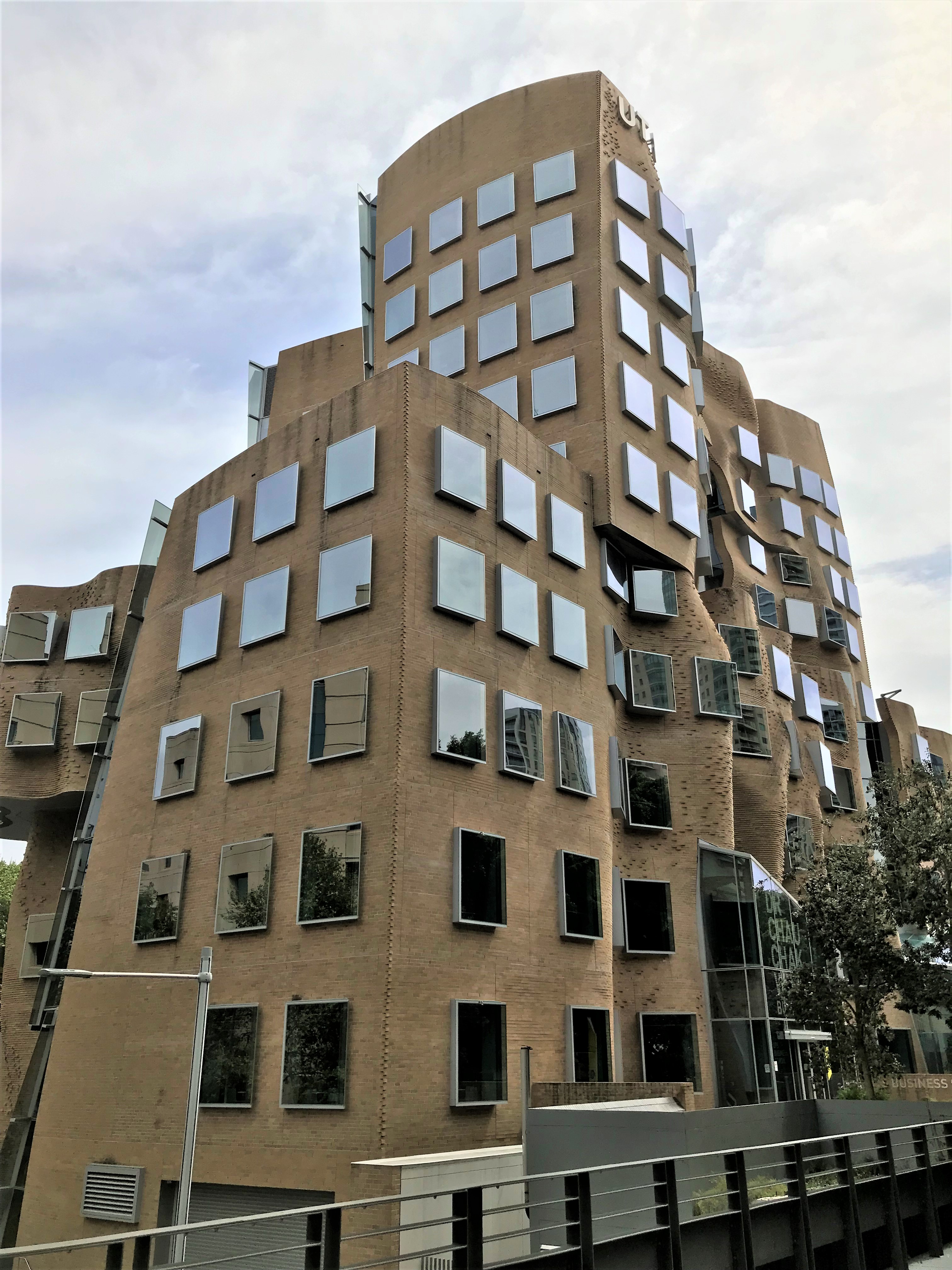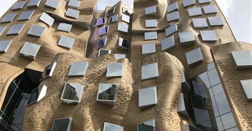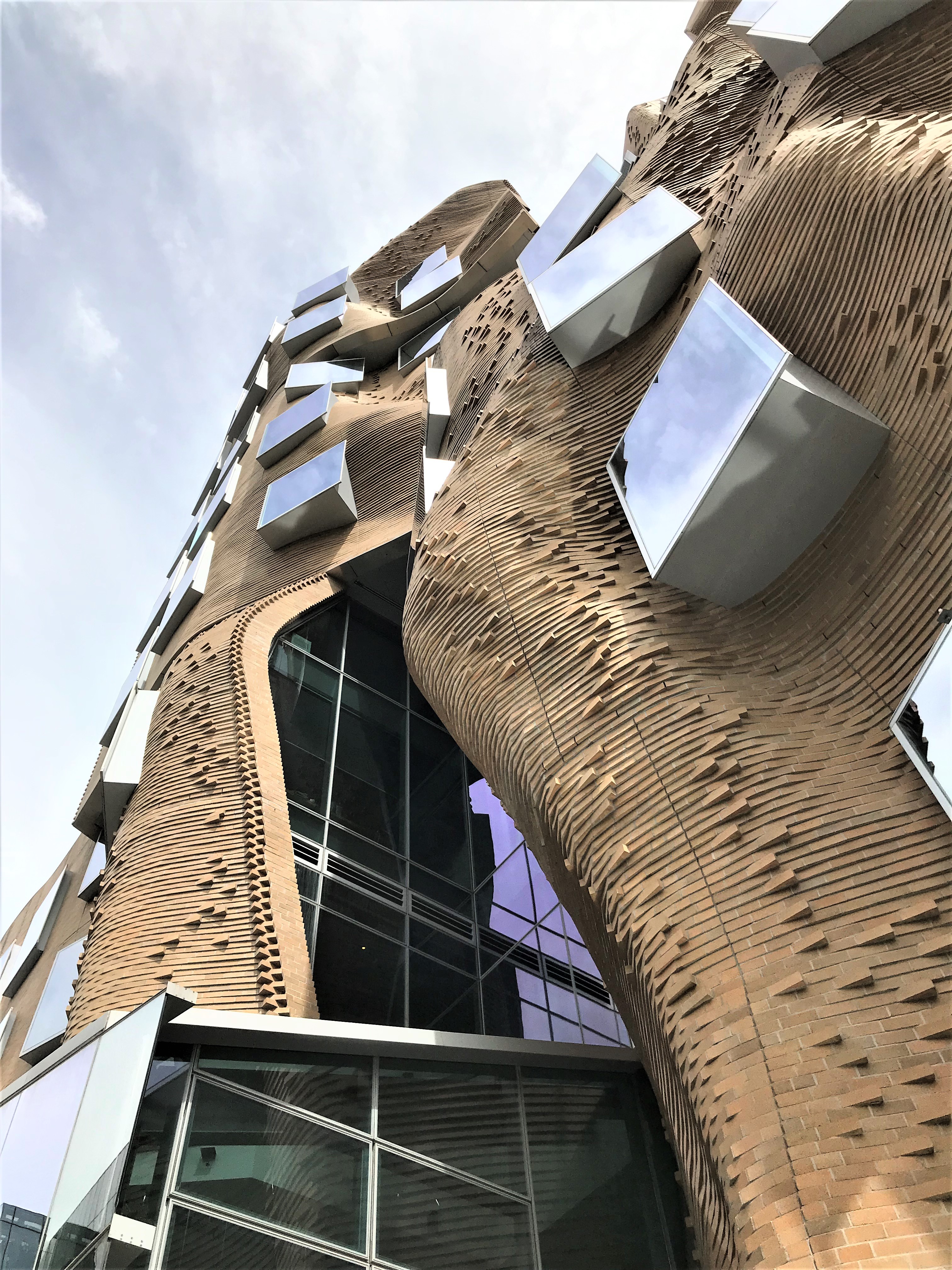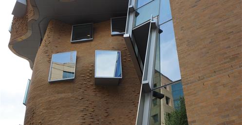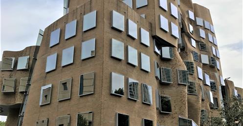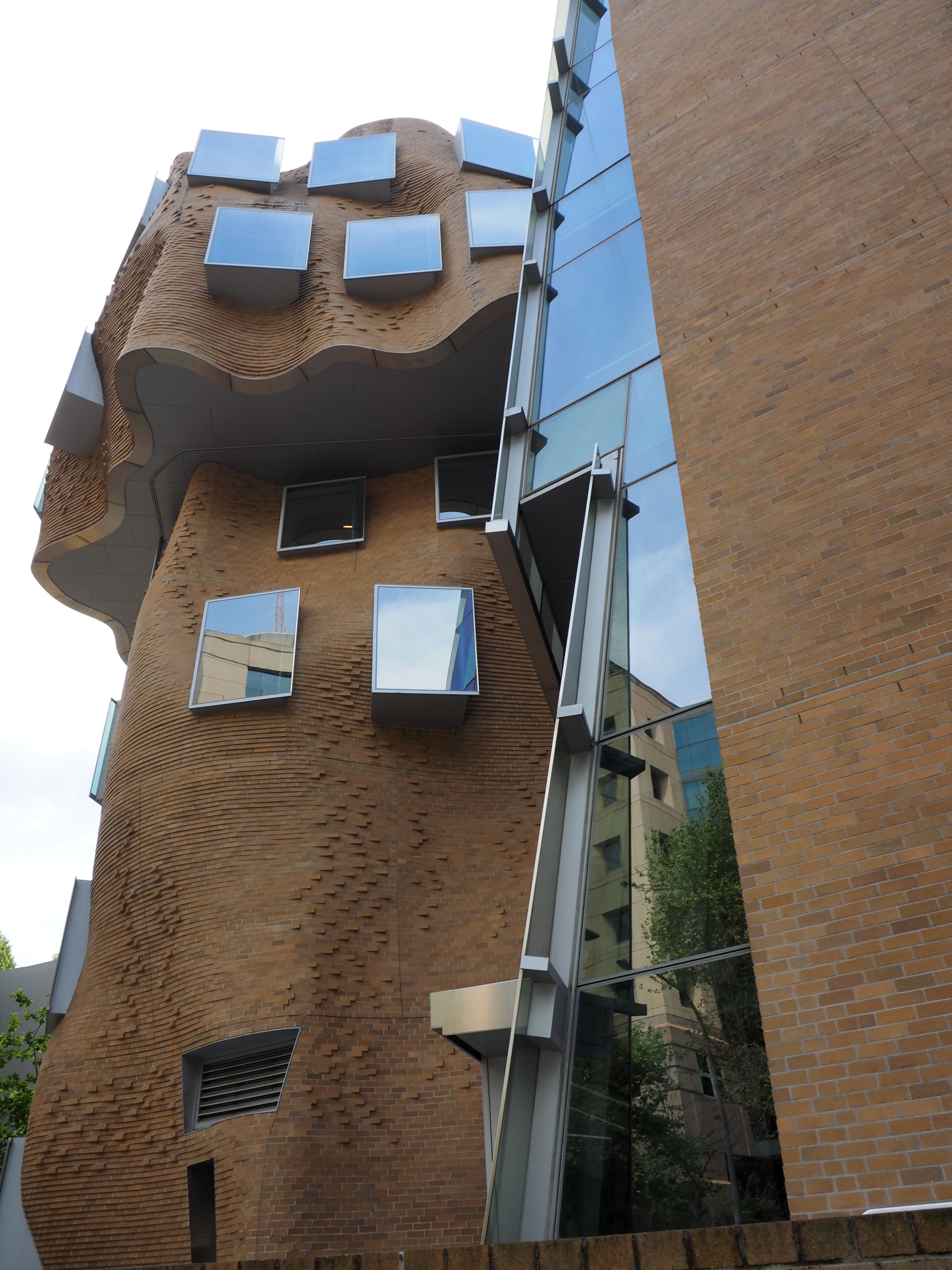 這座樓的立面用掉了32萬塊定製磚, 整體設計被形容成一個「壓扁的褐色紙袋子」。弗蘭克·蓋瑞說,「也許它很像一個褐色的紙袋子,但是這裡面很靈活,有很大的改變和移動的空間。」