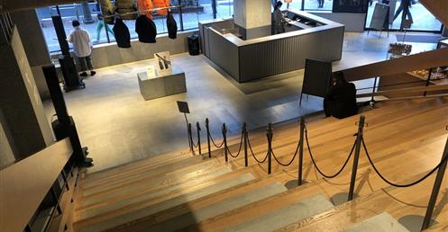 結合服飾店跟餐廳的旅店,空間設計強調大、水平跟工業特色。