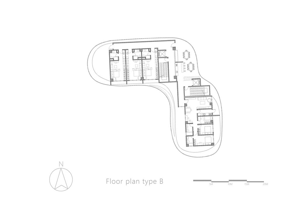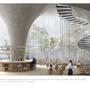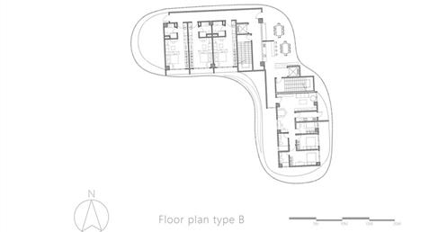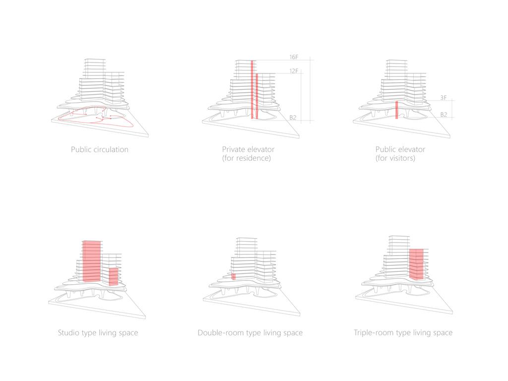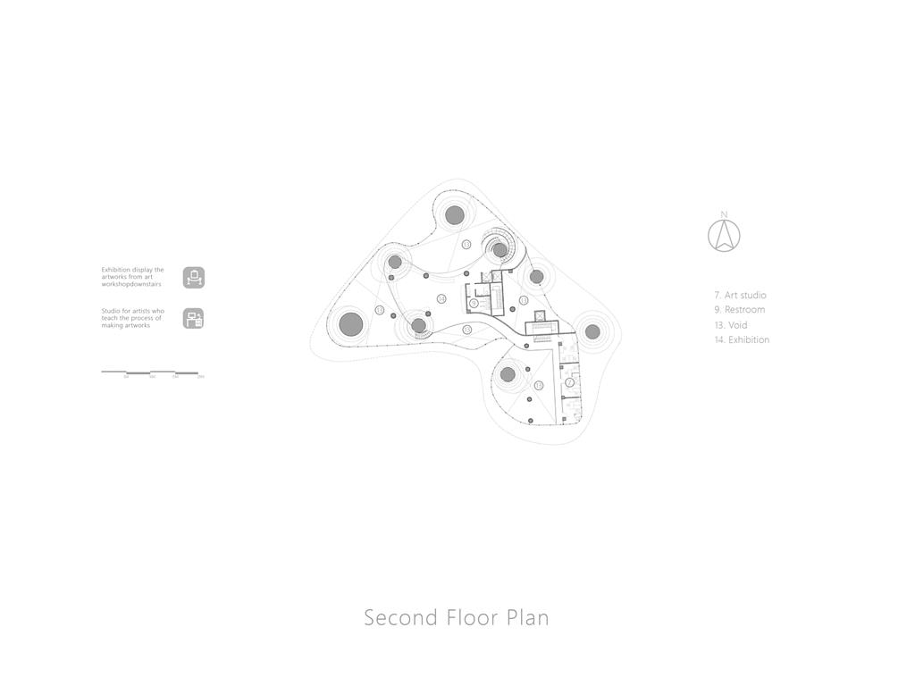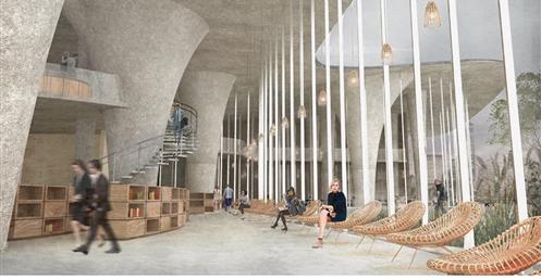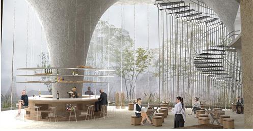 在結構系統與樓層計畫的設計上,我們透過自由的曲面牆與薄殼系統,發展變化度高、自然、有機的挑高空間,並運用樓層高低錯落的設計手法,創造互動性更高的的公共空間。
