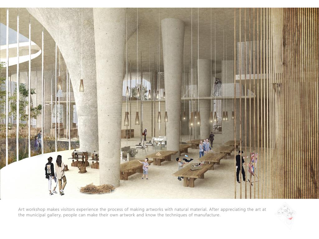 我們試圖尋找青埔的在地文化與故事,透過最貼近當地環境與文化的設計手法,促使公共住宅的住戶與當地居民進行互動,共同營造「共享的生活模式」與「共享的娛樂型態」,並透過公共藝術與藝術展演空間的空間創造,期望帶進觀光與觀展體驗的人潮,共同分享全新的藝術生活型態。