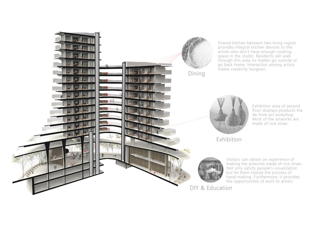 社會住宅、藝術家工作室、公共閱讀空間、工藝體驗教室、藝術展演空間