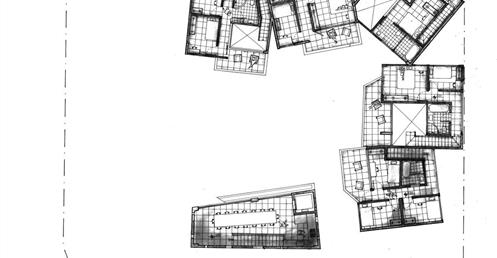 這次的設計是一個位於關渡的共宅,周遭多為四層的公寓或是更高層的集合住宅,每一戶雖然住得近,但彼此間的互動卻很少,因此我試圖創造出集居的另一種可能,讓單元與單元之間可以輕易地產生互動,而不是冷漠的關係,我聯想到的是陶淵明的文章中桃花源的情境,居民間彼此熟識,過著與自然共生的生活,以此作為設計的發想。