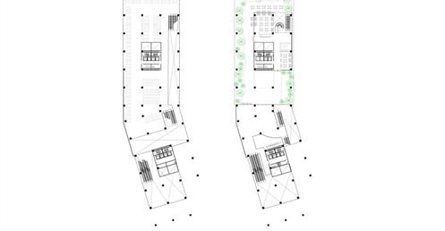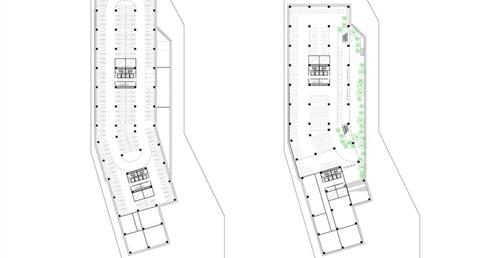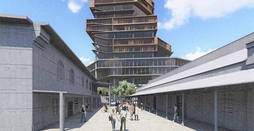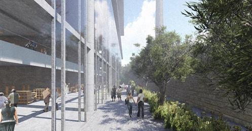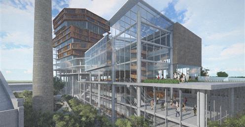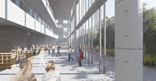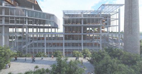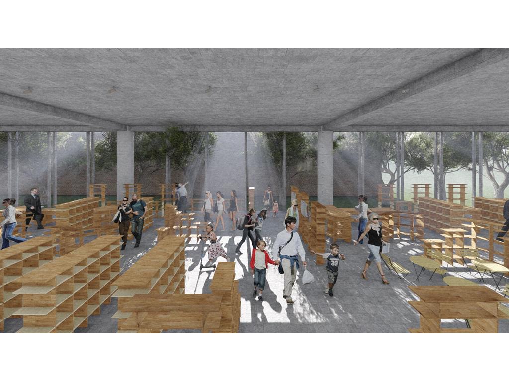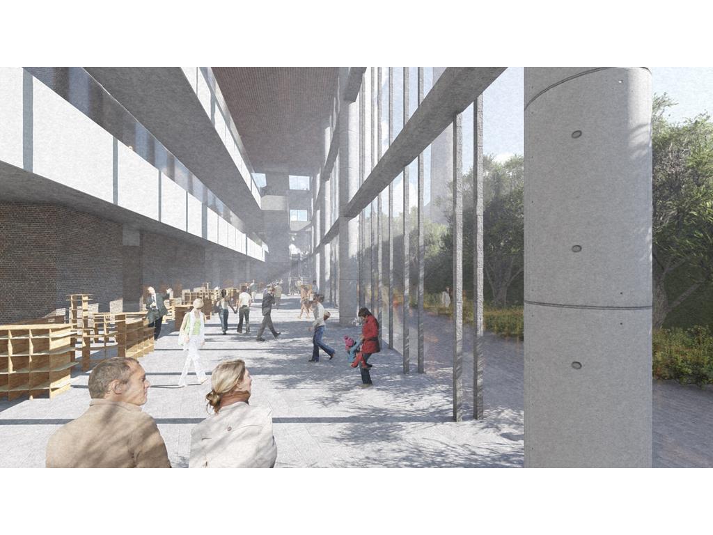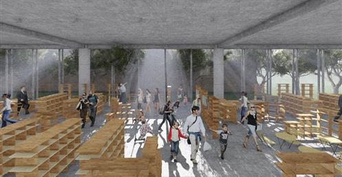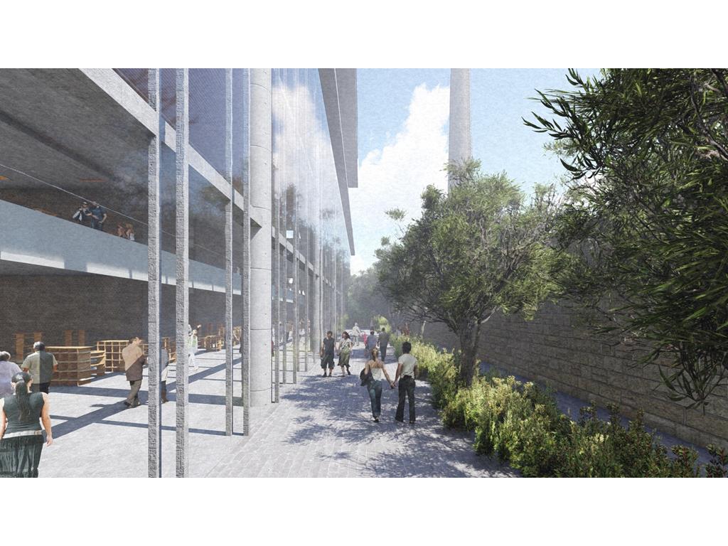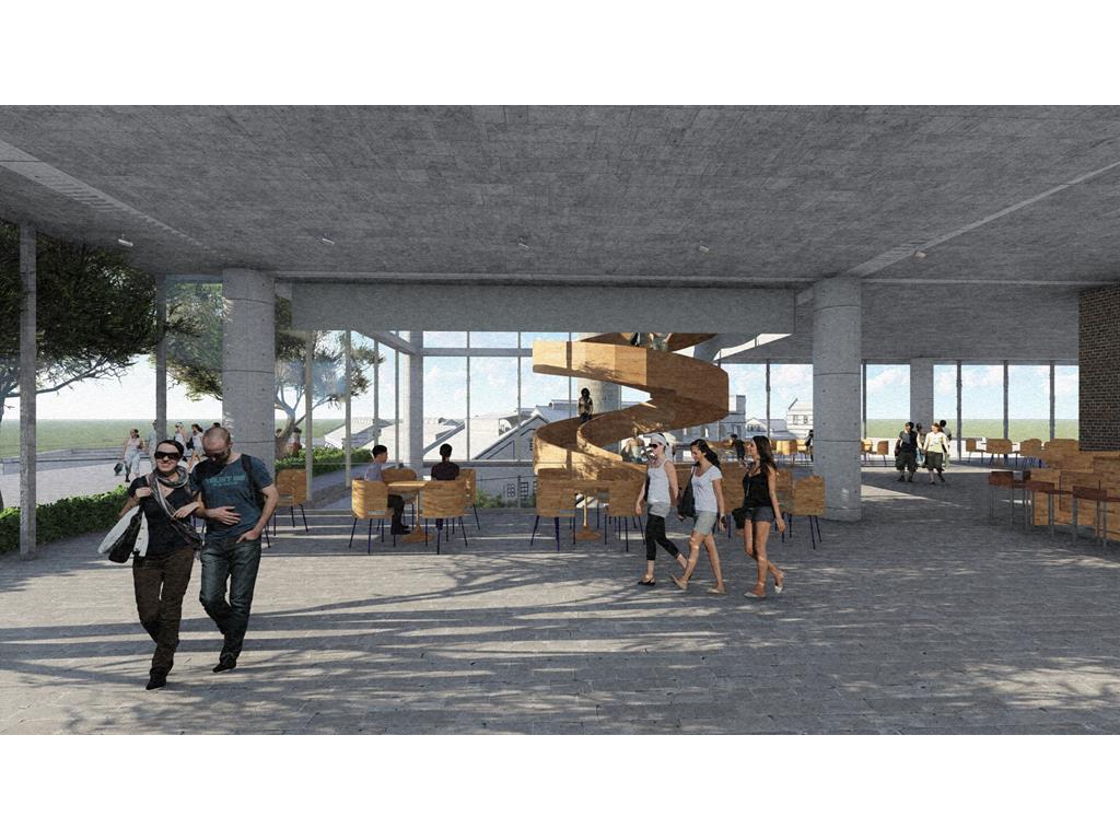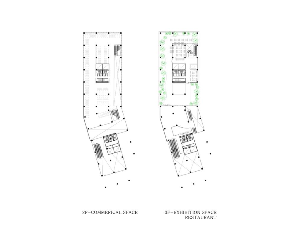北棟為文創商業空間帶,底層為文創生活市集、設計師品牌店,高層為文創食集等用餐空間,透過挑高與通透的空間,讓商業活動融入周圍的紅磚屋與華山老建築群中,使新舊空間不斷對話,創造永續經營的空間。