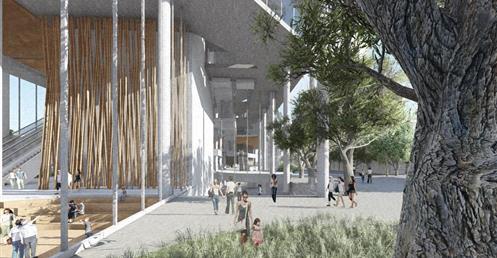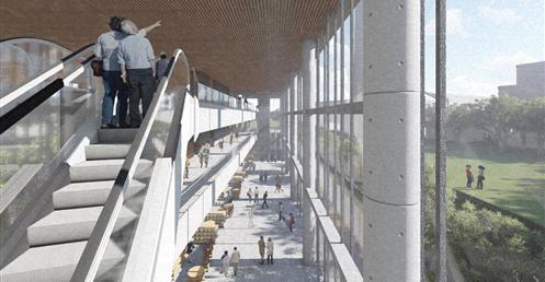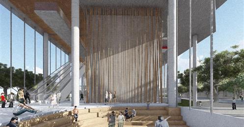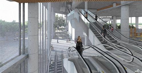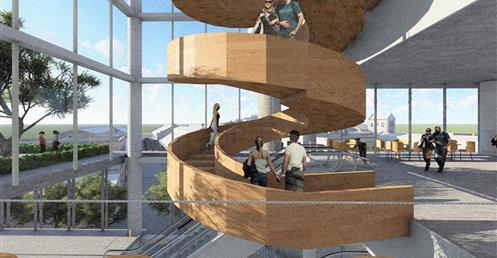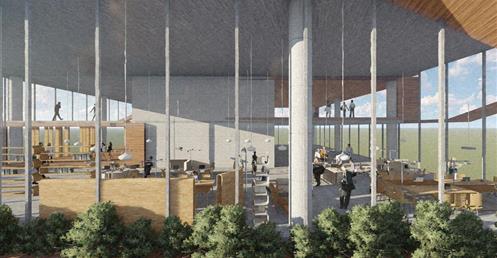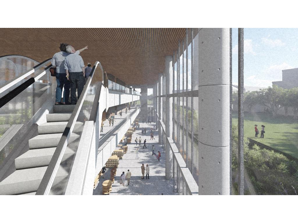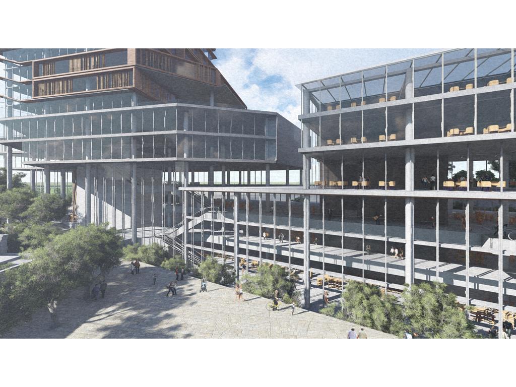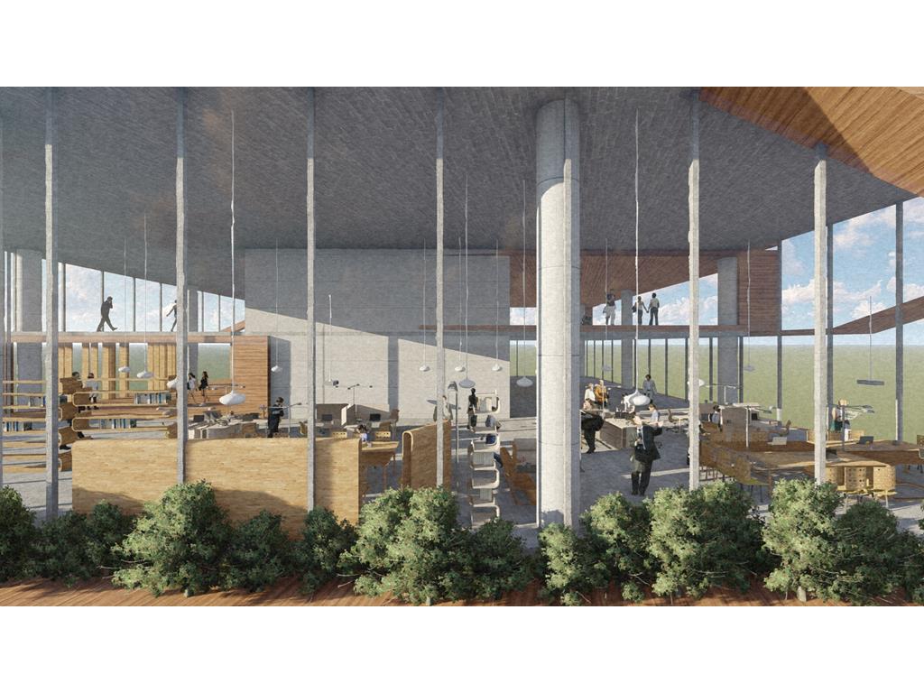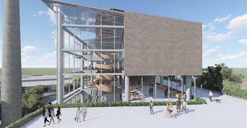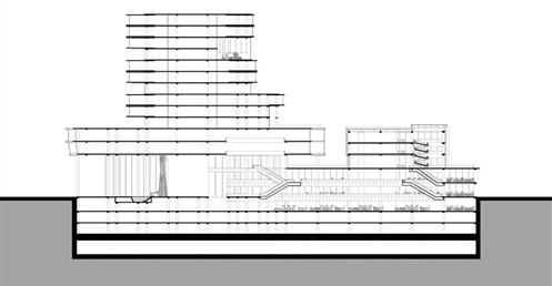 整個設計分為南棟與北棟兩區,南棟為展演與文創產業帶,底層為展演與展銷中心,高層為品牌營運中心與設計者工作室等辦公空間,透過多層次的空間設計,營造創作者與參觀者互動與交流的空間,讓來訪民眾,以參觀體驗的方式加入設計產業的一環。
