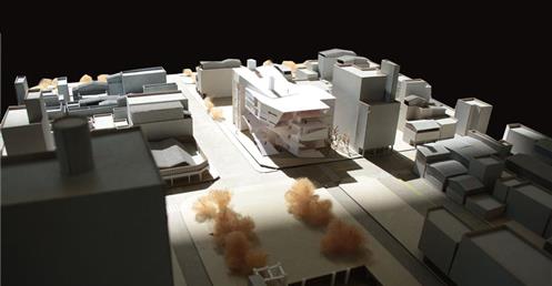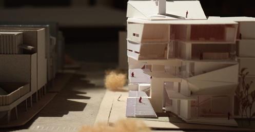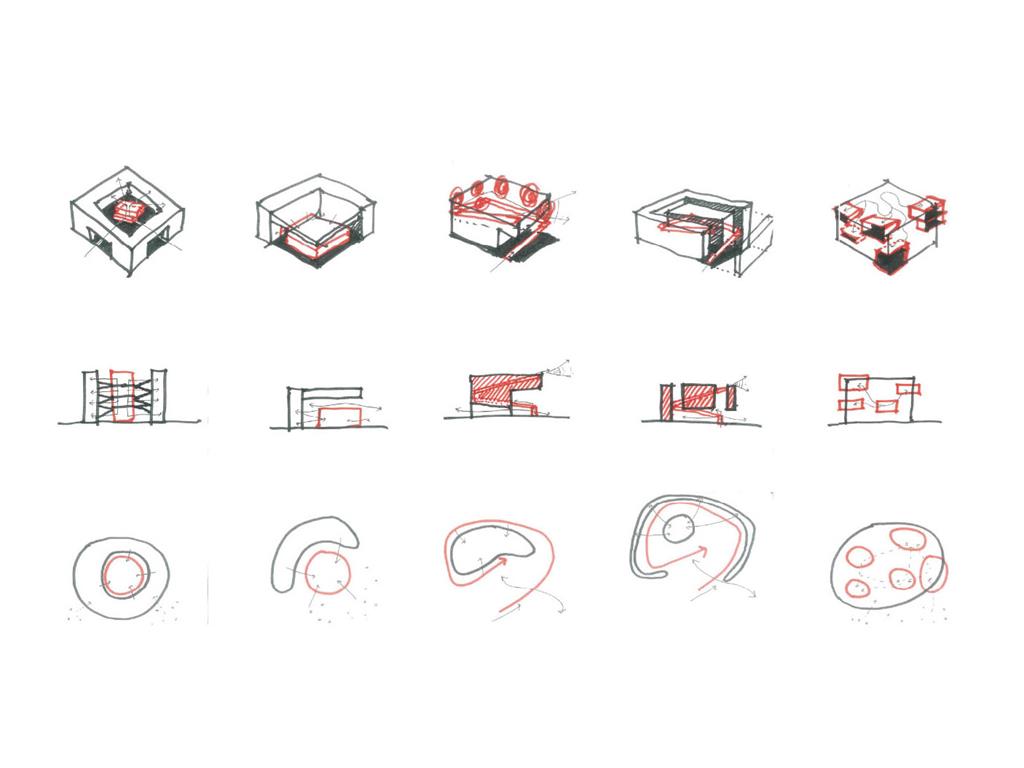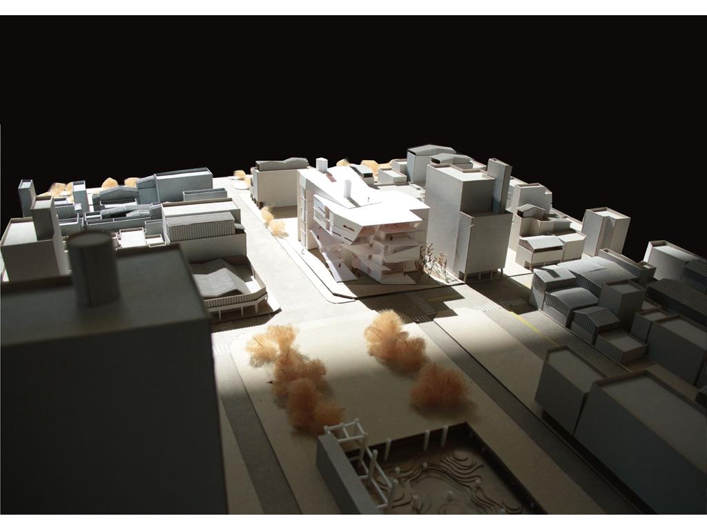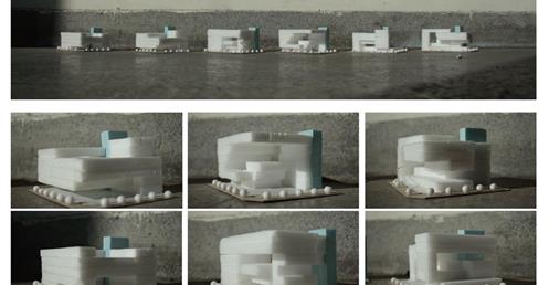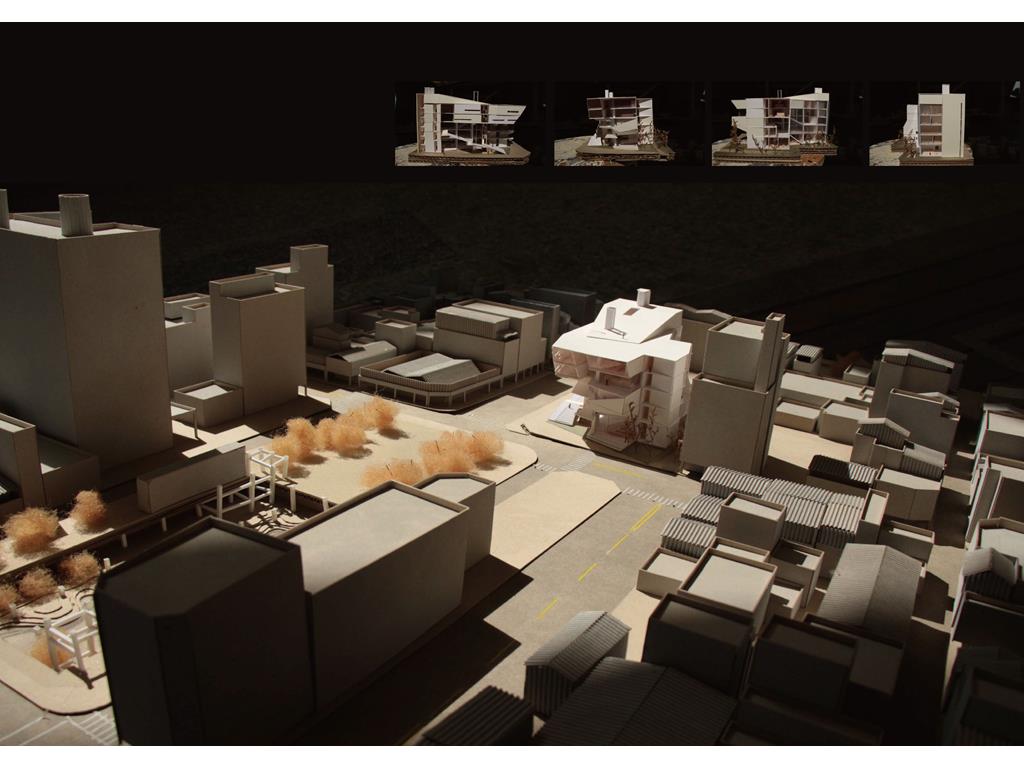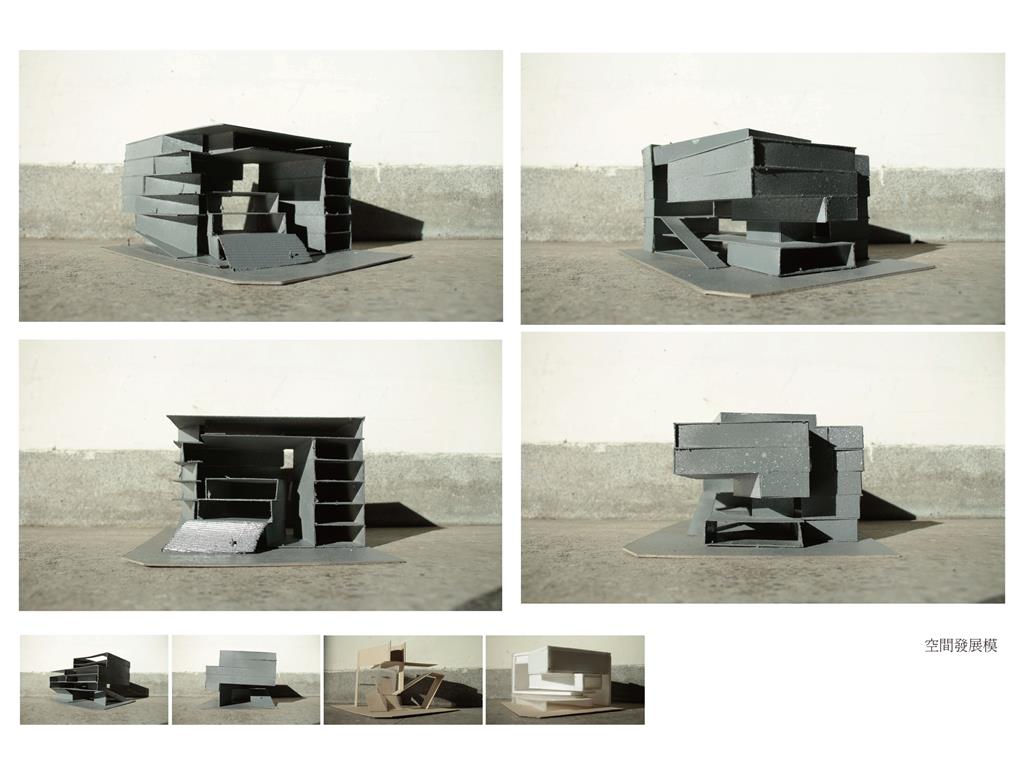 起初,我以:中庭與進深、獨立的階梯狀公共場域兼垂直動線、連結兩側的階梯狀公共場域兼垂直動線 等三個元素去發展了九個方案,而” 連結兩側的階梯狀公共場域兼垂直動線”方案中,連續地聯繫兩側的轉角、都市舞台的營造、牆面與地面的延展變化 等三個特質,既能創造人群的交會,更能聯繫基地與都市環境。