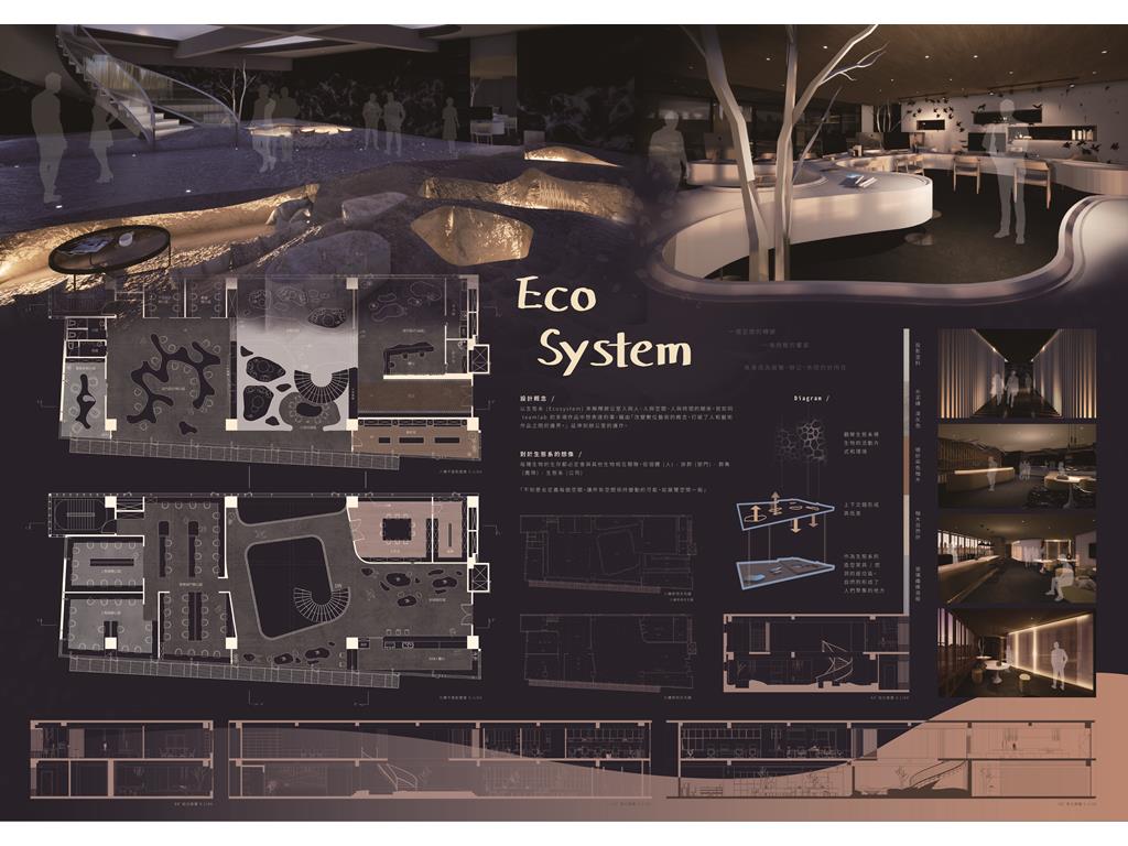 每種生物的生存都必定與其他生物互相關聯,從個體(人)-族群(部門)-群集(團隊)-生態系(公司)。以生態系(ECOSYSTEM)來解釋辦公室內人與人、人與空間、人與時間的關係,就如同TeamLab的多項作品中想表達的事,藉由「改變數位藝術的概念,打破了人和藝術作品之間的邊界。」延伸到辦公室的運作。