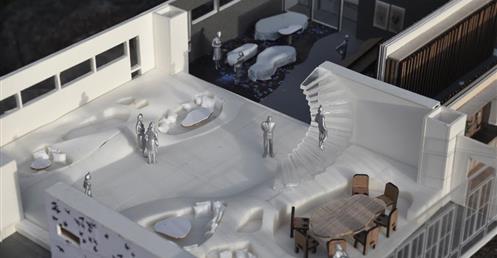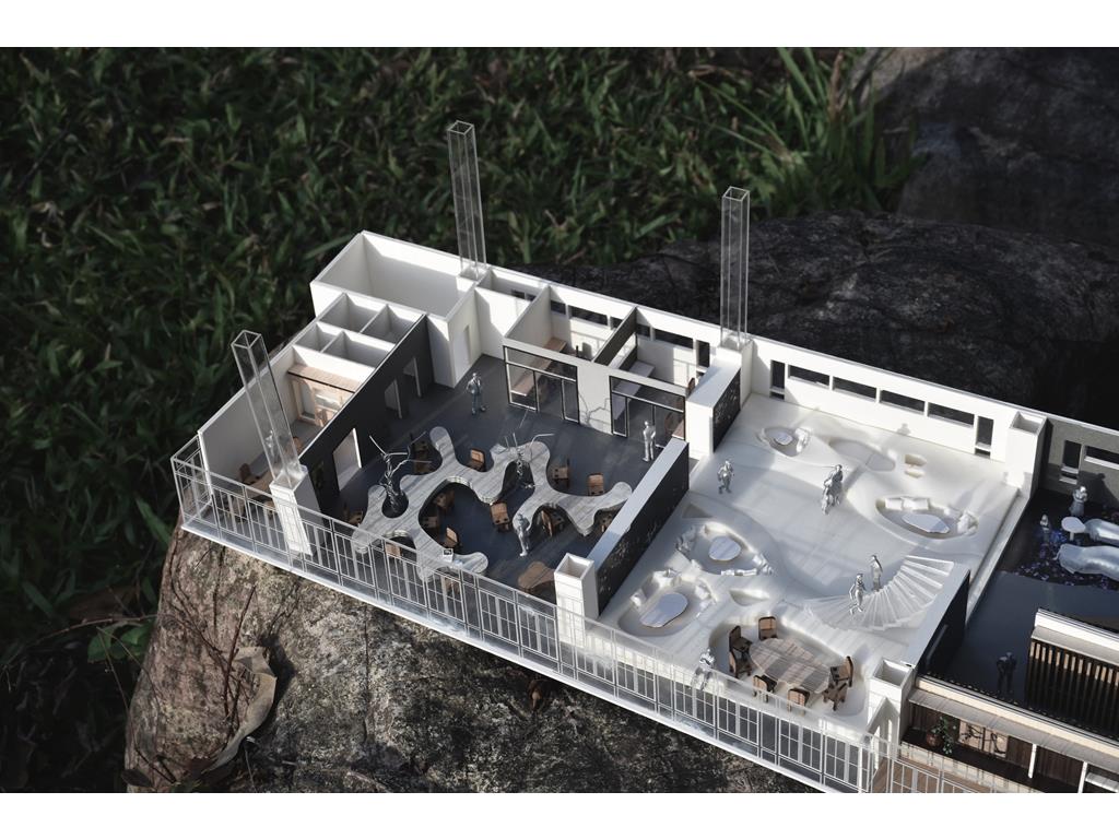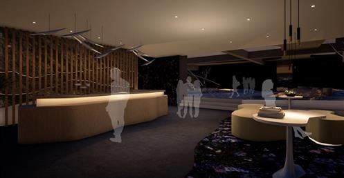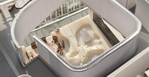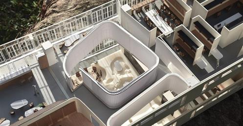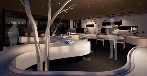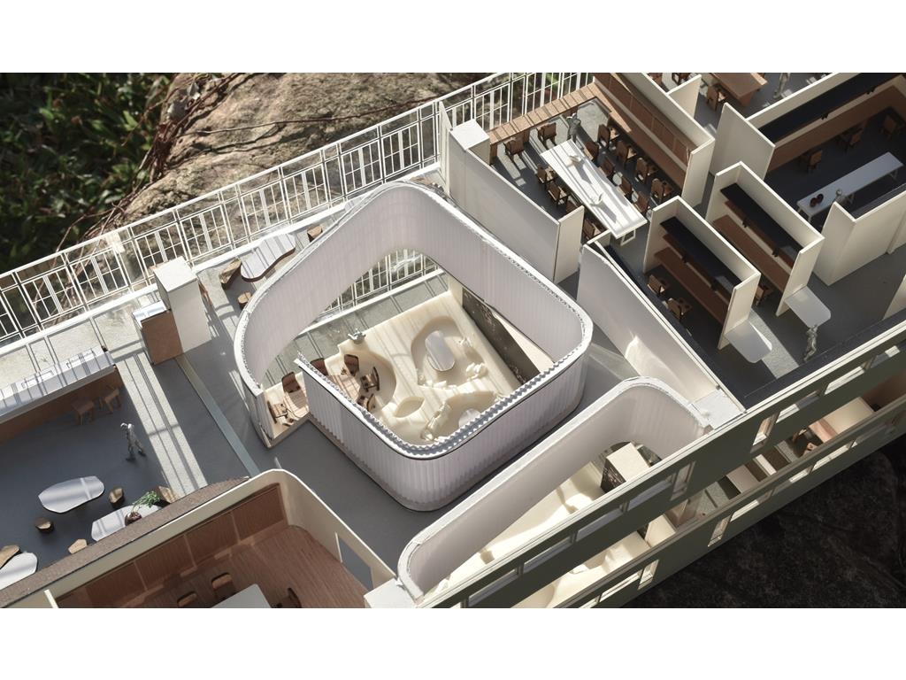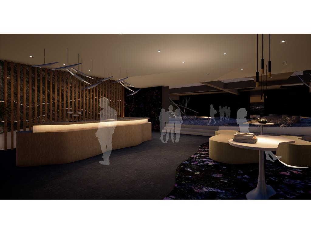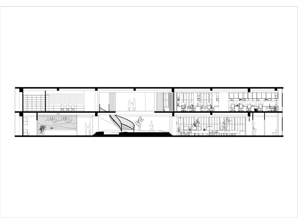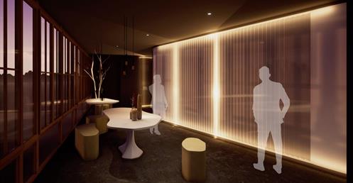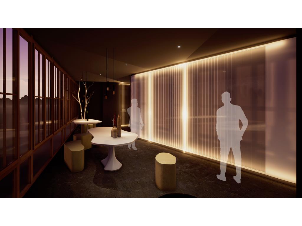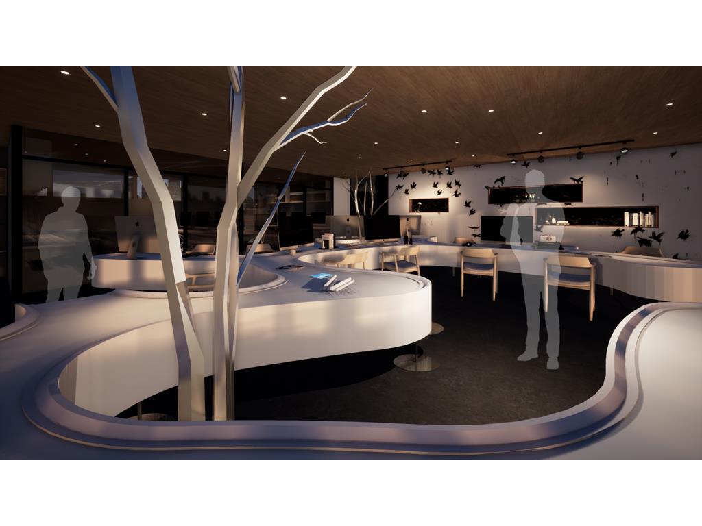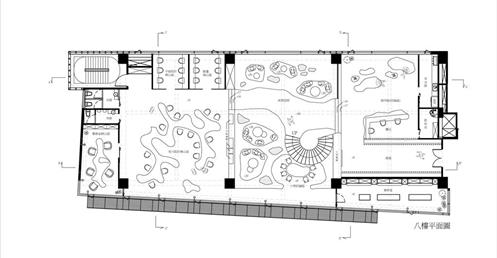 八樓的中心設計了一個有機體型態的空間,提供了寬廣的空間來展示TeamLab的投影技術且與員工、外來賓客等都能產生高度的互動性,願能創造數位藝術與人們之間嶄新的關係性。