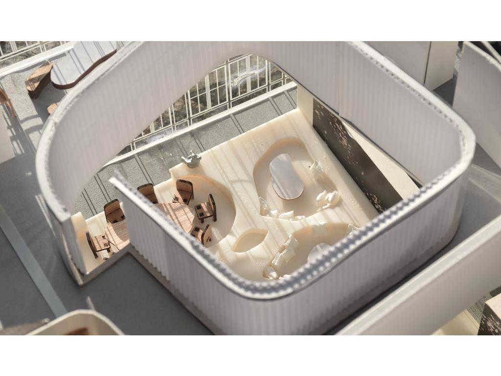 隨著科技的改變設計出能跟得上時代演進的空間,在作品裡加入集團的關係性,對觀賞者之間的關係性產生影響,讓每個空間有彼此的關聯。