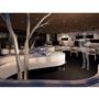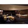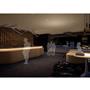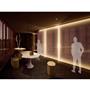 延續廊道的氛圍來到了櫃檯與接待區,在空間中營造出生態系的感覺,不規則的家具結合燈光製造出漂浮感。