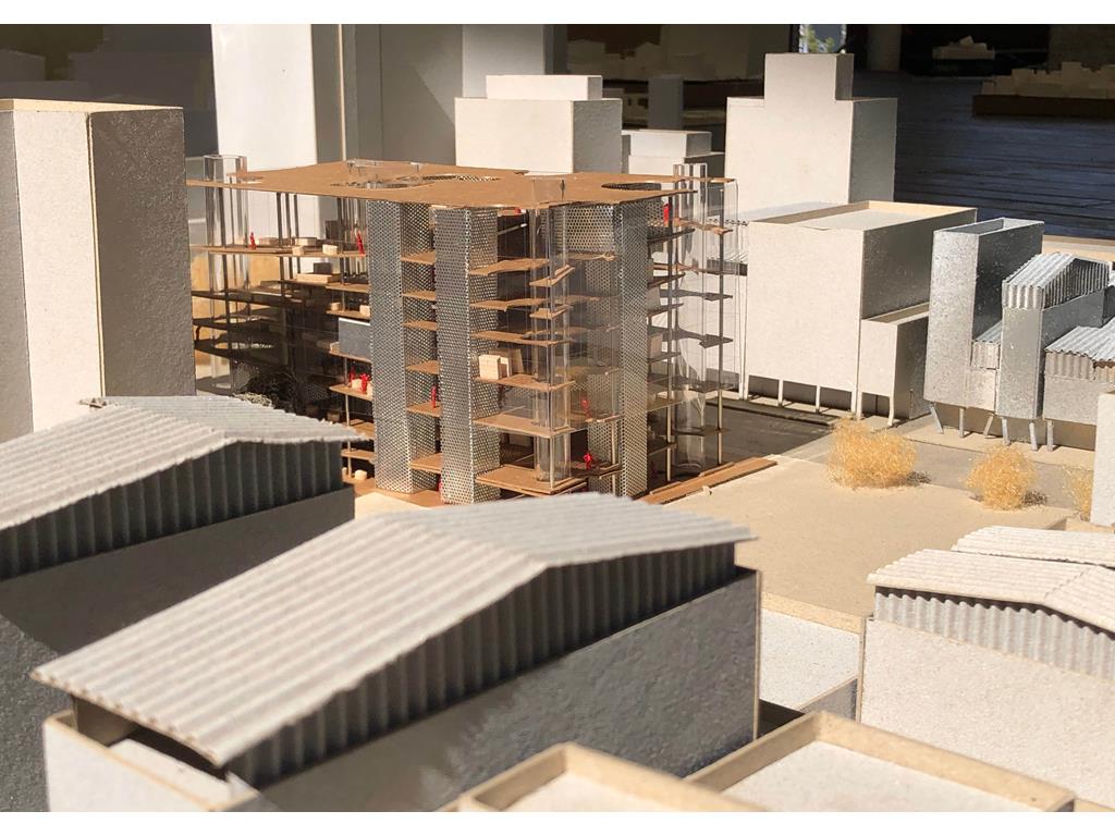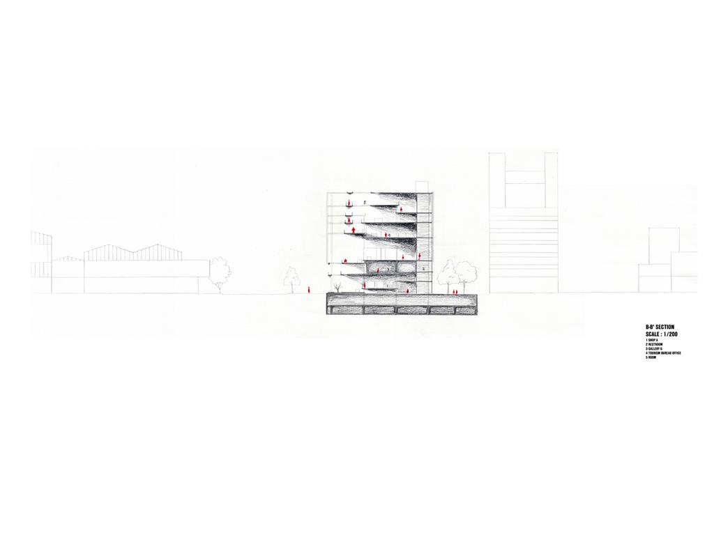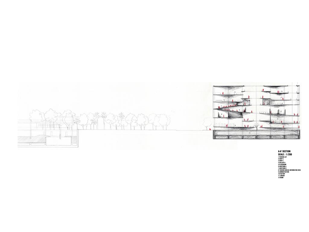 co-working型態之出租辦公室,主要出租給廣告製版公司作為使用,期望此基地能以廣告行銷作為台南觀光推廣的起始點,滲透性空間提供政府機構與co-working spaces能產生有效互融性的互動,設計者在此工作也能彼此刺激、溝通交流。