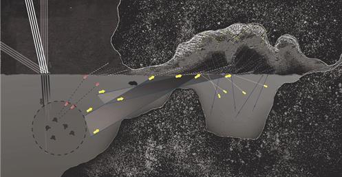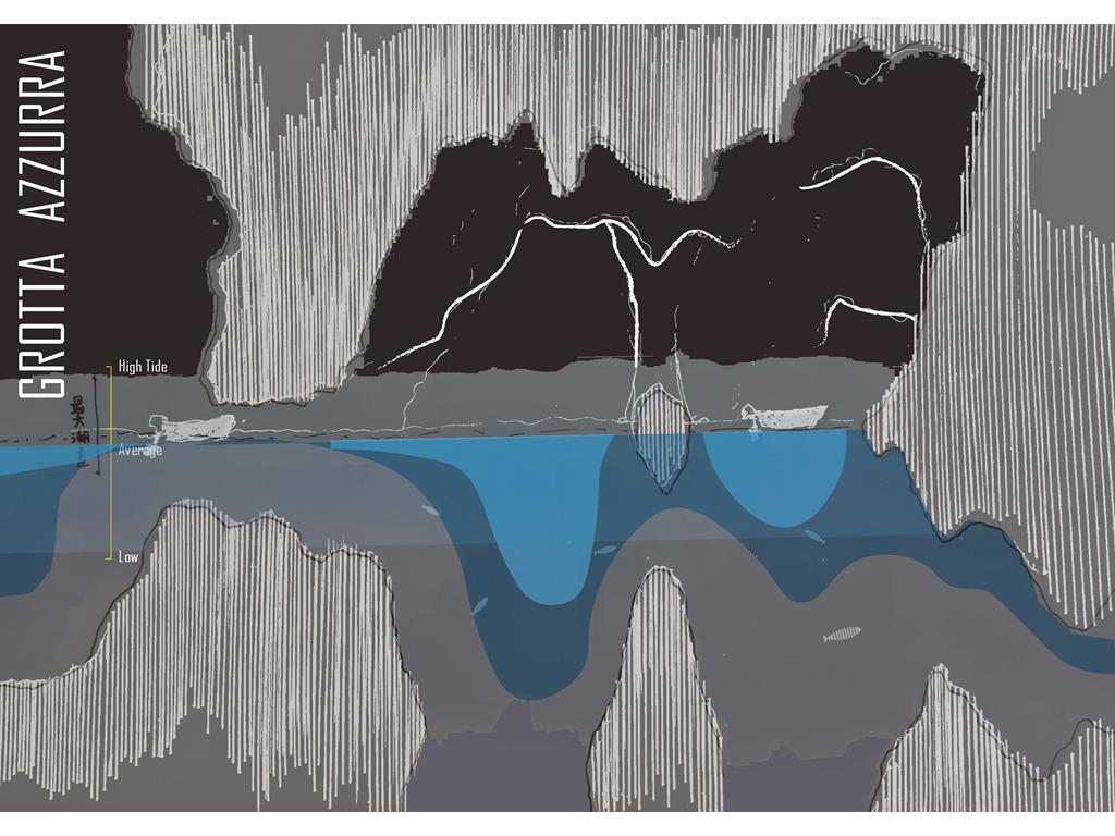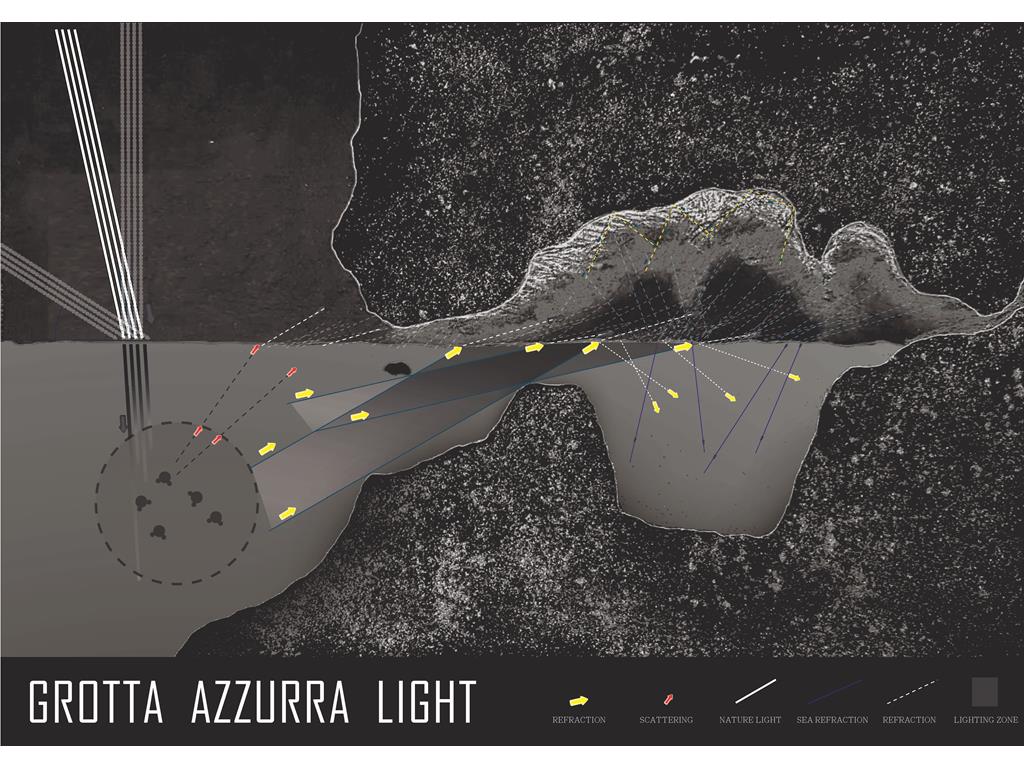 對於”藍洞光成像與人的空間知覺”研究,我發現藍洞中所看的光與成像,其實在傳遞的過程中已經被環境所影響,因此藍洞中所見的成像是由許多環境特質、位置、時序等等的因素共同疊加而成。