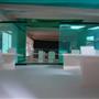 天花部分我們在每個顔色部門的“格子”範圍内的天花都做了相應顔色的天花,另外入口處由於是主意像區,依據我們整個空間的設計概念都是源於Logo,所以也在入口處設計了個極具表象的Logo燈飾。