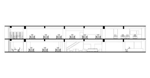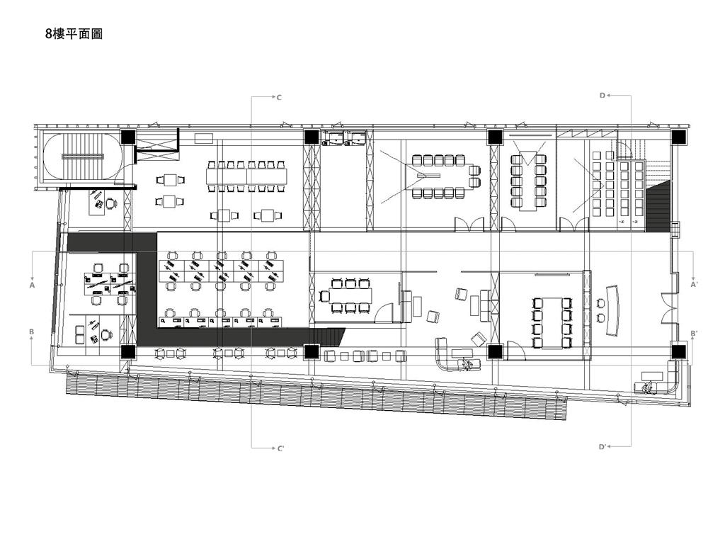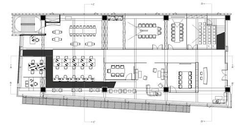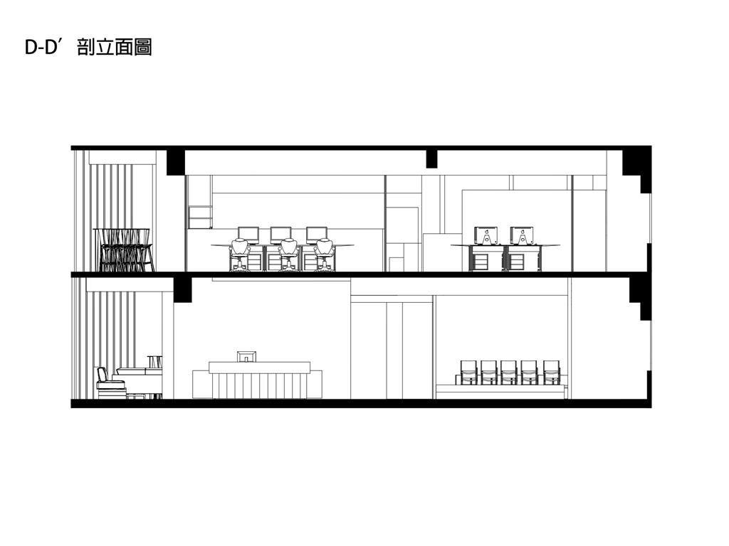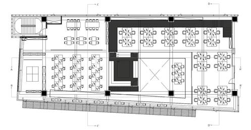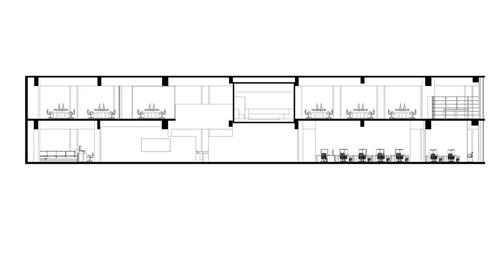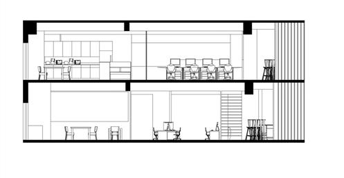 此外,在整個空間中的黑盒子是設計重點,爲了凸顯黑盒子我們在它旁邊做了挑空,使它成爲一個獨立的量體。黑盒子的概念是“聚”,空間用途是讓整體員工都能聚到裏面進行交流、娛樂、討論等。另外也明顯能發現的黑色走道是採用原Logo“鏈接”的理念,它分別分佈在8、9樓層的各個部門旁,串聯起每個部門之外也是員工們前往”聚“黑盒子的通道。