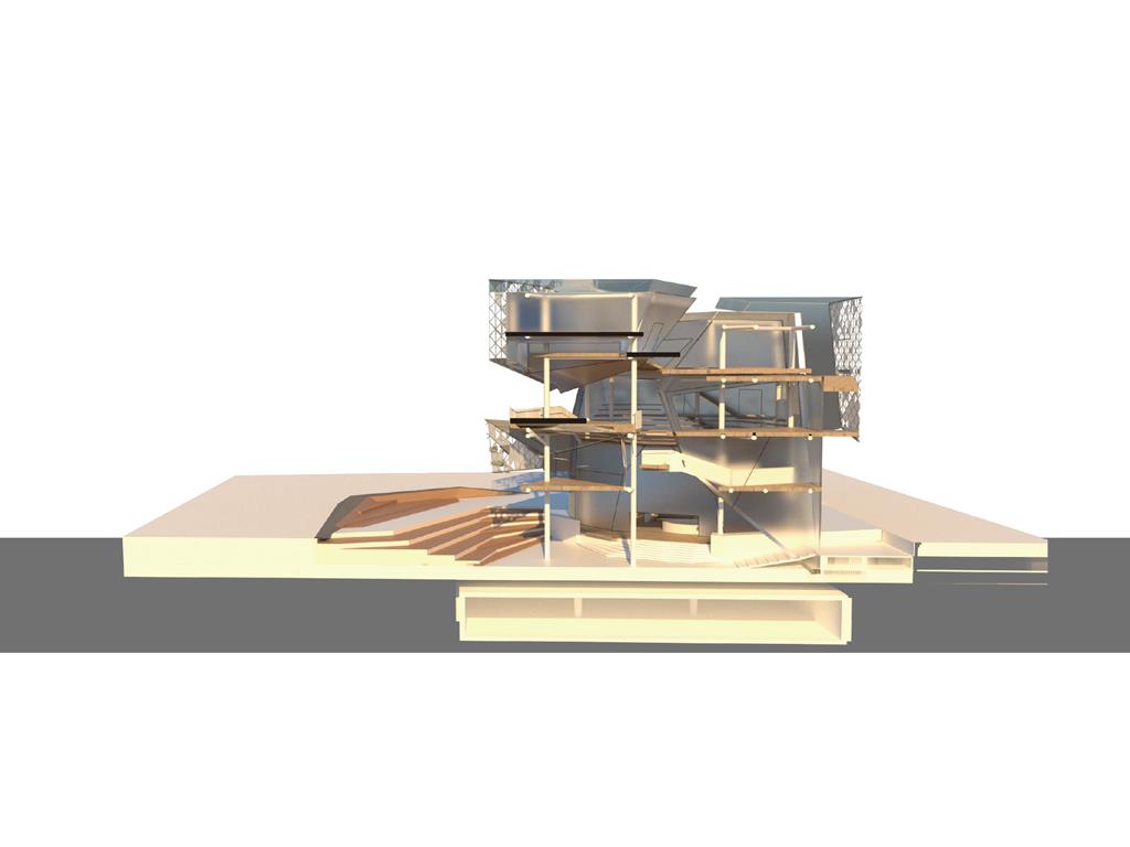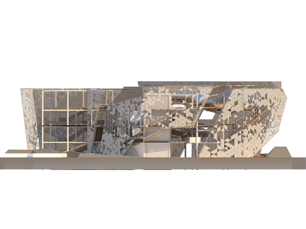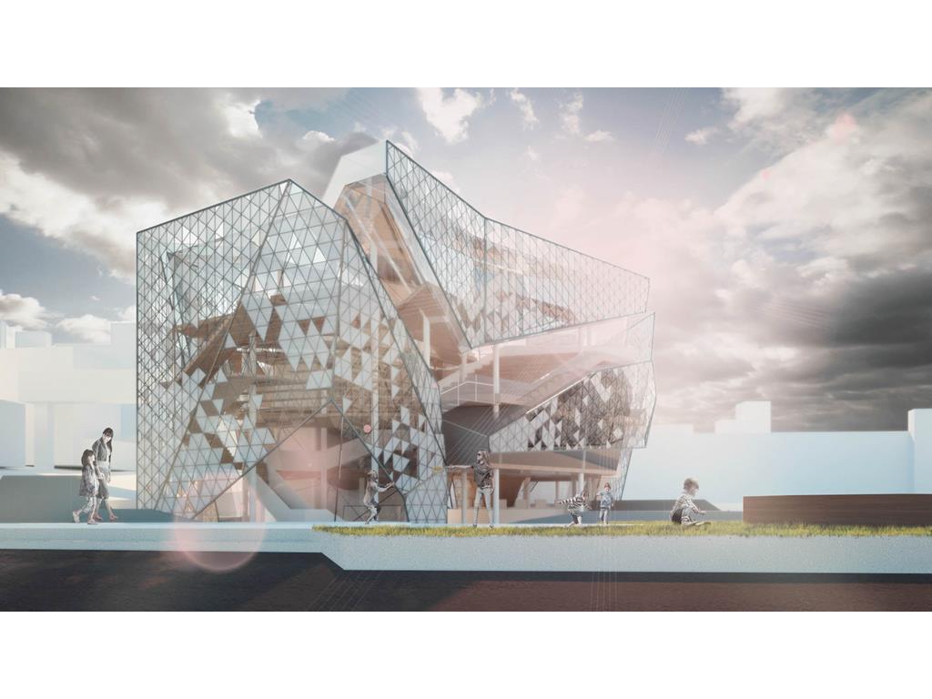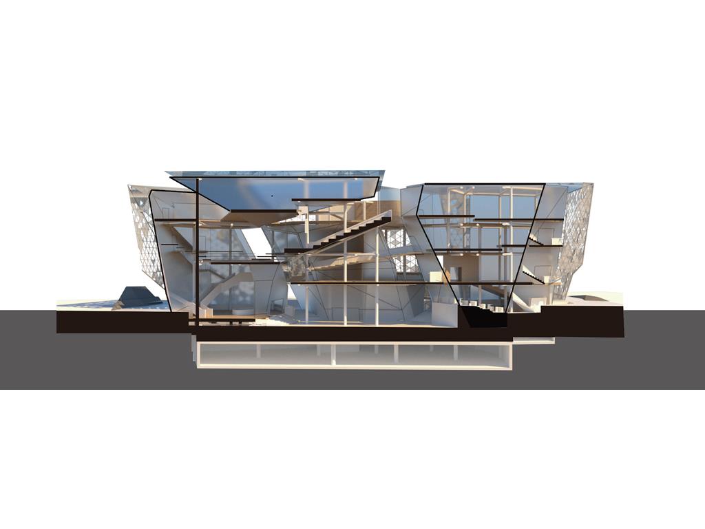 本次設計我由Rene Magritte所創作的窗系列發想;意圖將Magritte所擅長的創造矛盾融入到空間設計中;將一個有重量感的量體放入基地,讓身處在設計之外的人無法忽視;然而在內部空間卻強調著一種流動感,並使用穿孔鋁板作為外皮層因而產生一種較為強烈的穿透性。讓身處在空間內外中的人產生兩種截然不同的空間印象,形成獨特的空間感受。