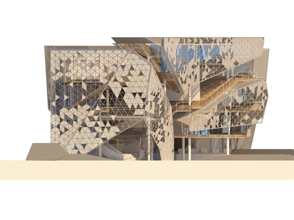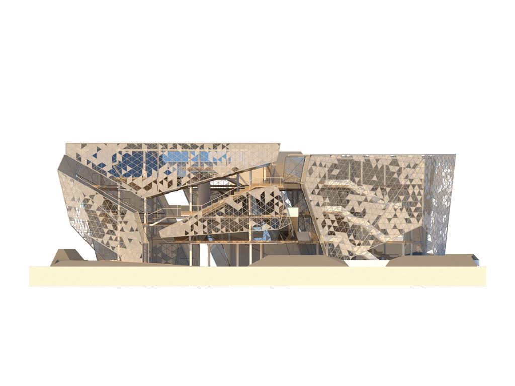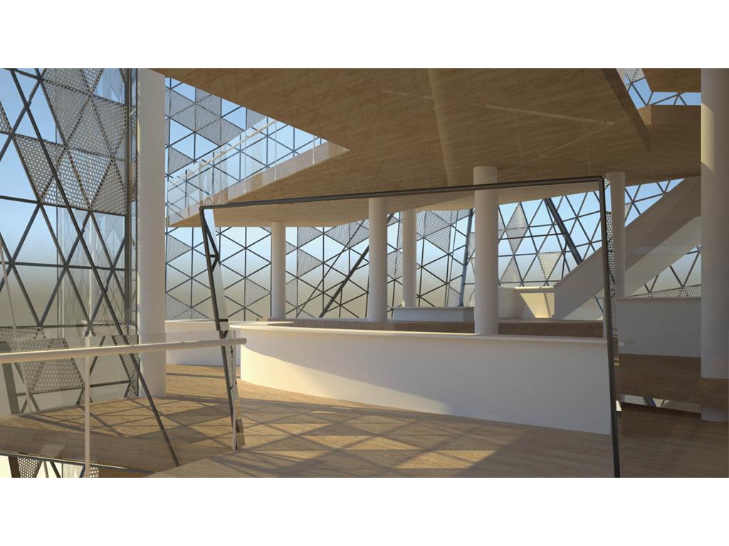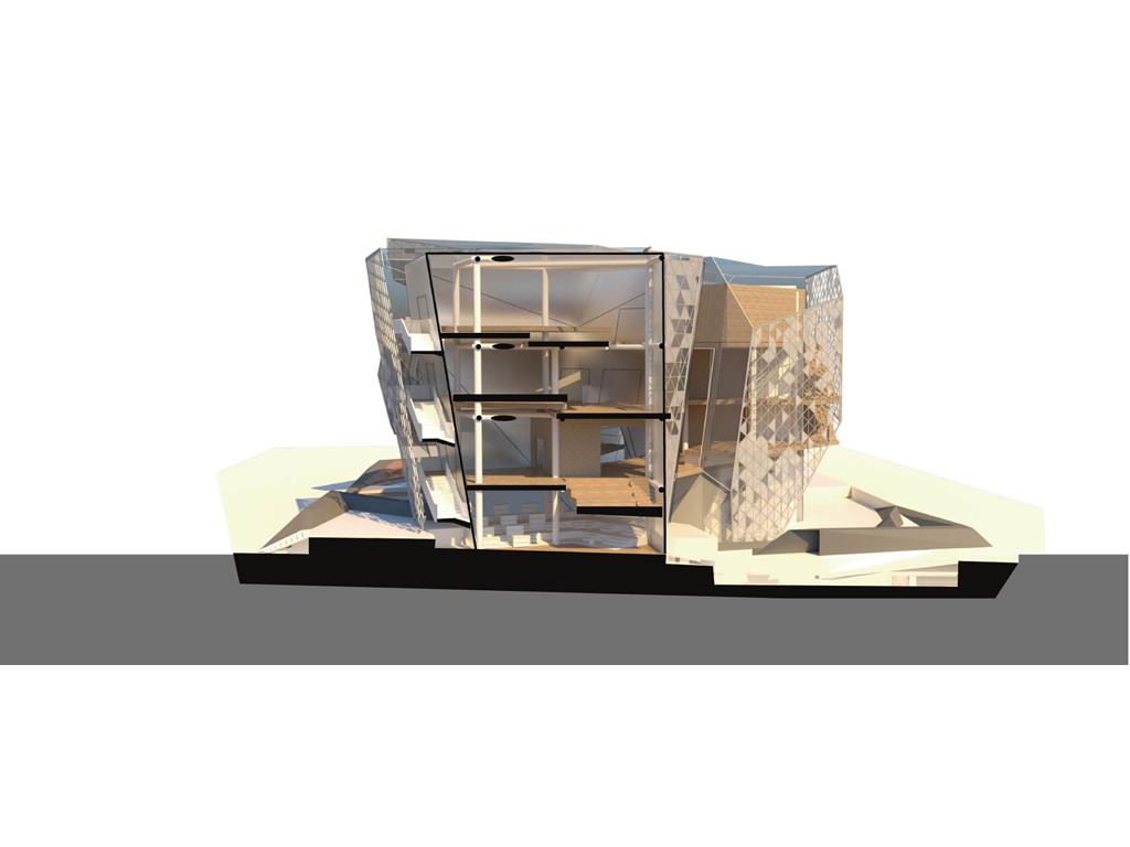 本次設計我由Rene Magritte所創作的窗系列發想;意圖將Magritte所擅長的創造矛盾融入到空間設計中;將一個有重量感的量體放入基地,讓身處在設計之外的人無法忽視;然而在內部空間卻強調著一種流動感,並使用穿孔鋁板作為外皮層因而產生一種較為強烈的穿透性。讓身處在空間內外中的人產生兩種截然不同的空間印象,形成獨特的空間感受。