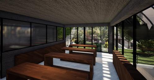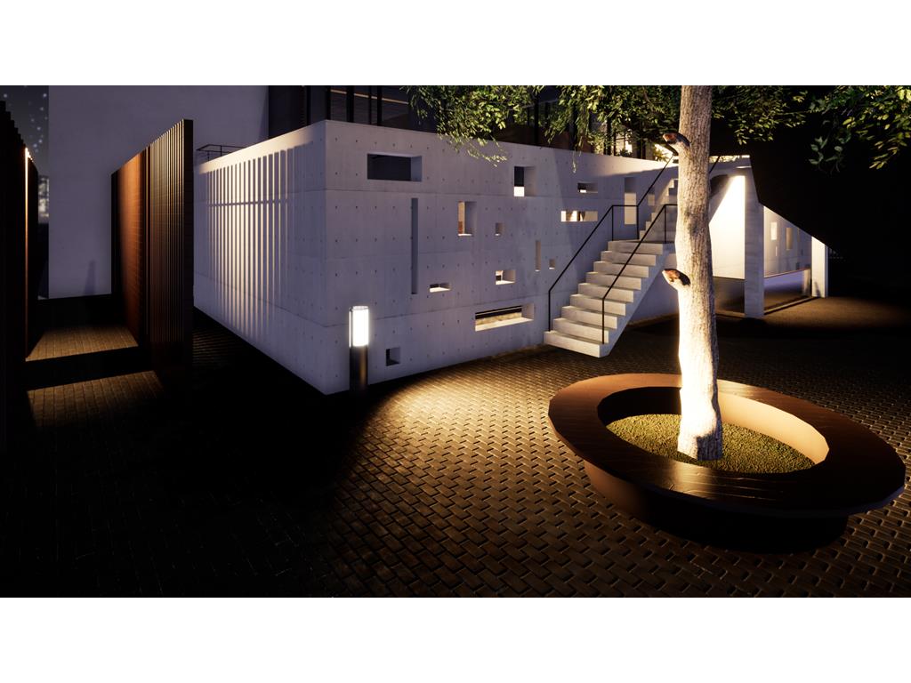 「重生」將沉寂許久的事物重新綻放的過程。座落綠川河岸的事務所,乘載著重整綠川回歸民里的計畫,將綠川活化成往日的風光,以此將綠帶延伸,從綠川延伸進事務所,之後通至台中火車站站前廣場,以帶動居民及參觀者的環境體驗。建築師能沉靜自我去體悟環境,從中去思考如何使建築有意義的存在於基地中並帶動基地的發展。
