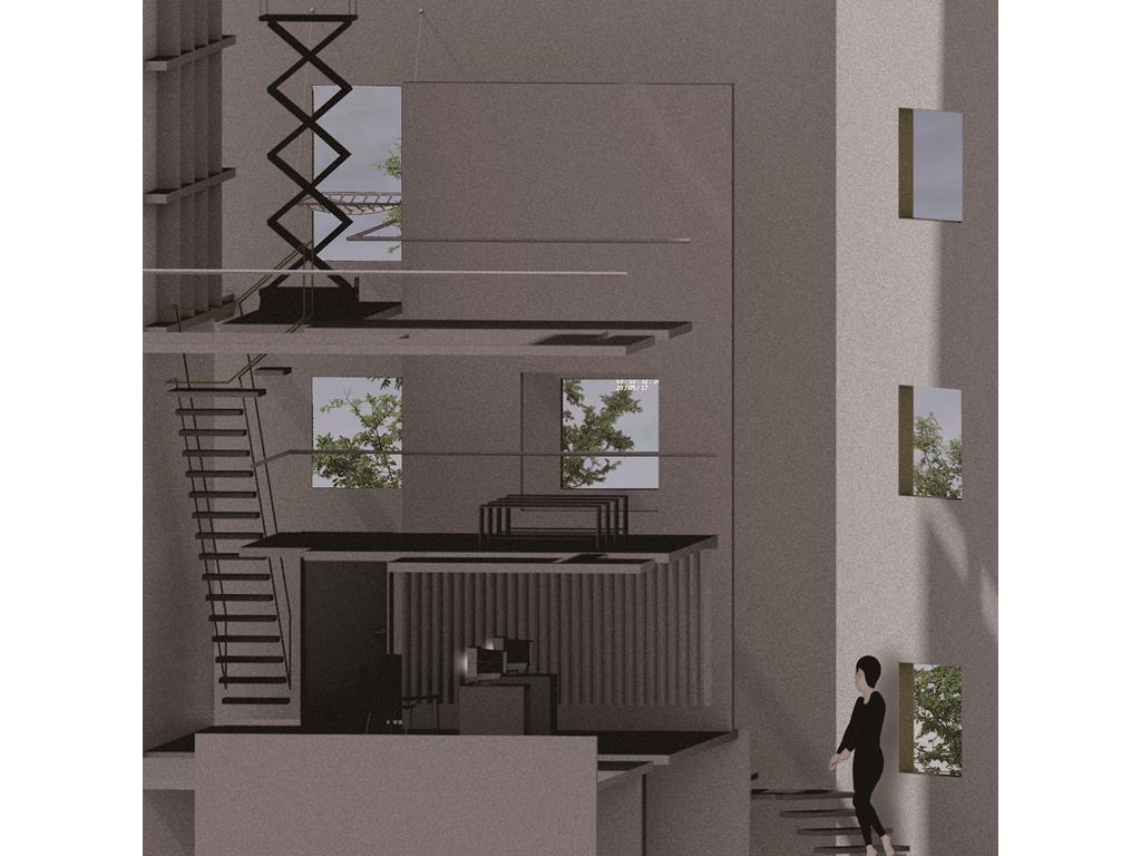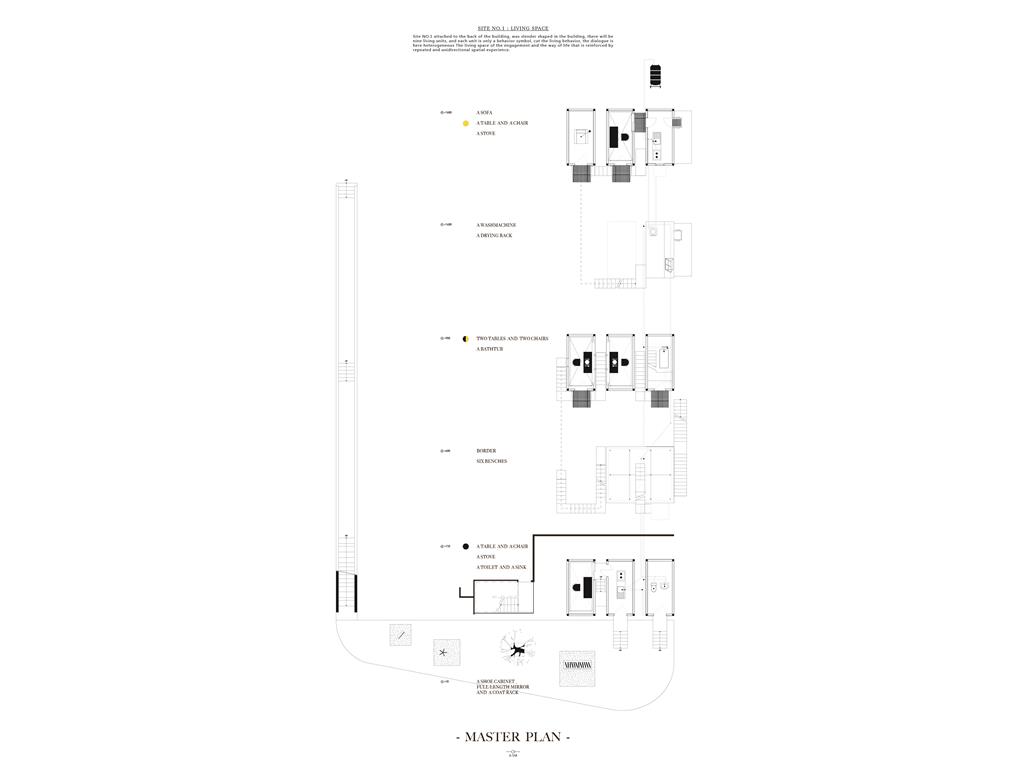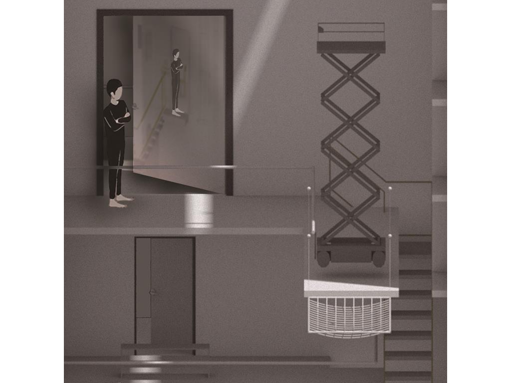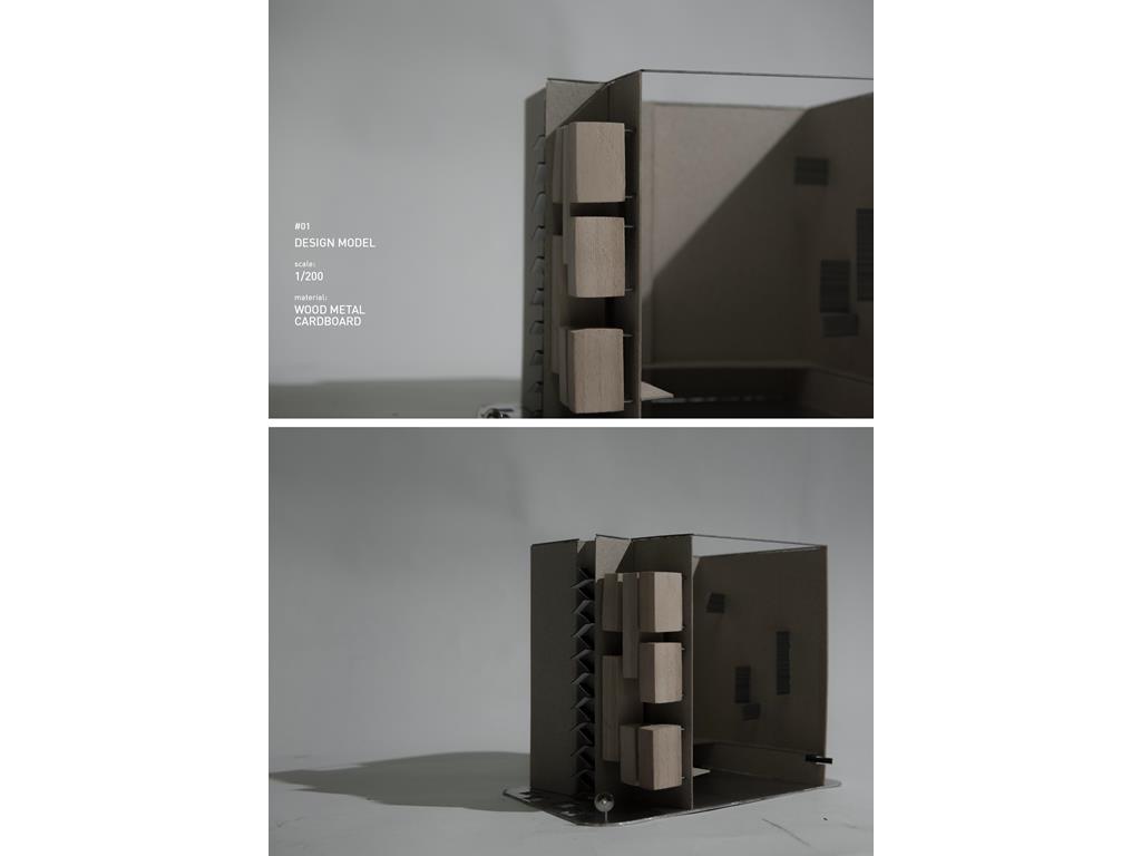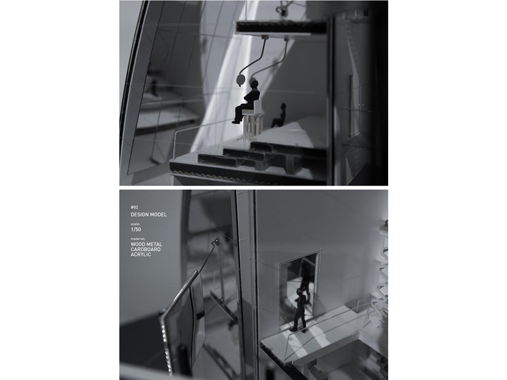 About the statement of dying people talked, you will be affected by subversive ideas whatever you already recognize — “ Time is non-linear. ” Therefore, people, objects, events, spaces should be separated and misplaced, and the relationship of architecture elements should be deconstructed and constructed of different axis of time.