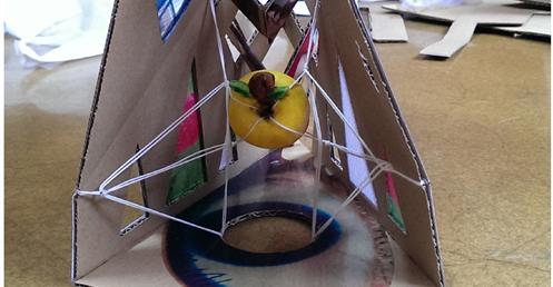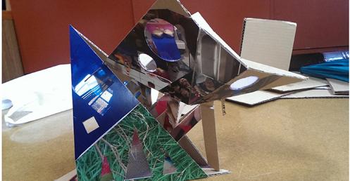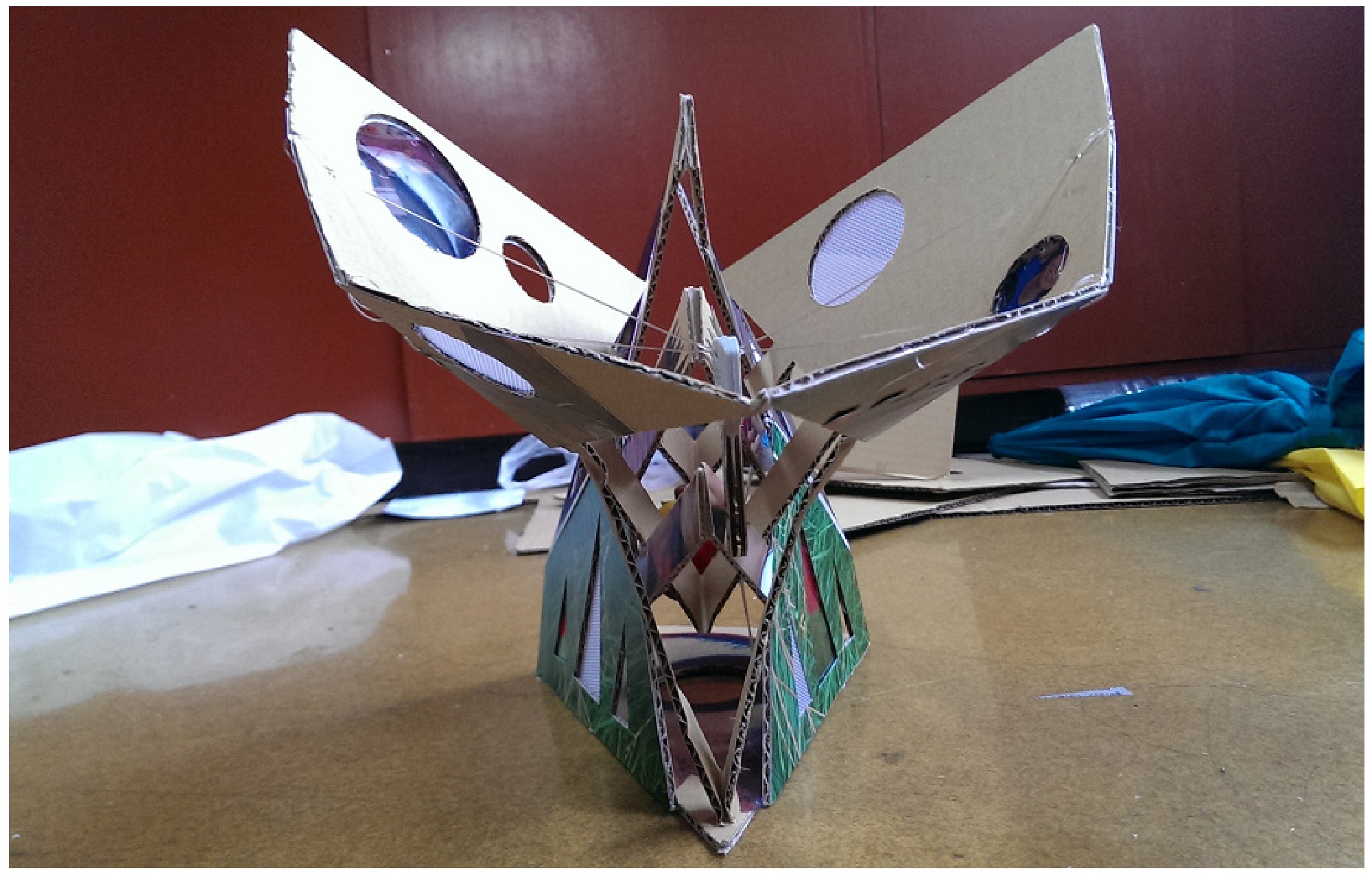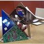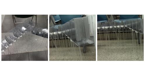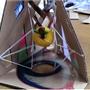利用泡泡土製作一個球體,細看發現是由很多小圓組成球體是想表達細微的單位構成大單位的意象。組件與主體利用磁鐵做連結,表達壁虎吸附於牆上的吸附力,交錯的壓克力條暗示毛大小產生的層次。