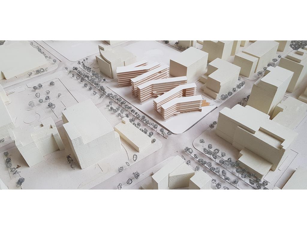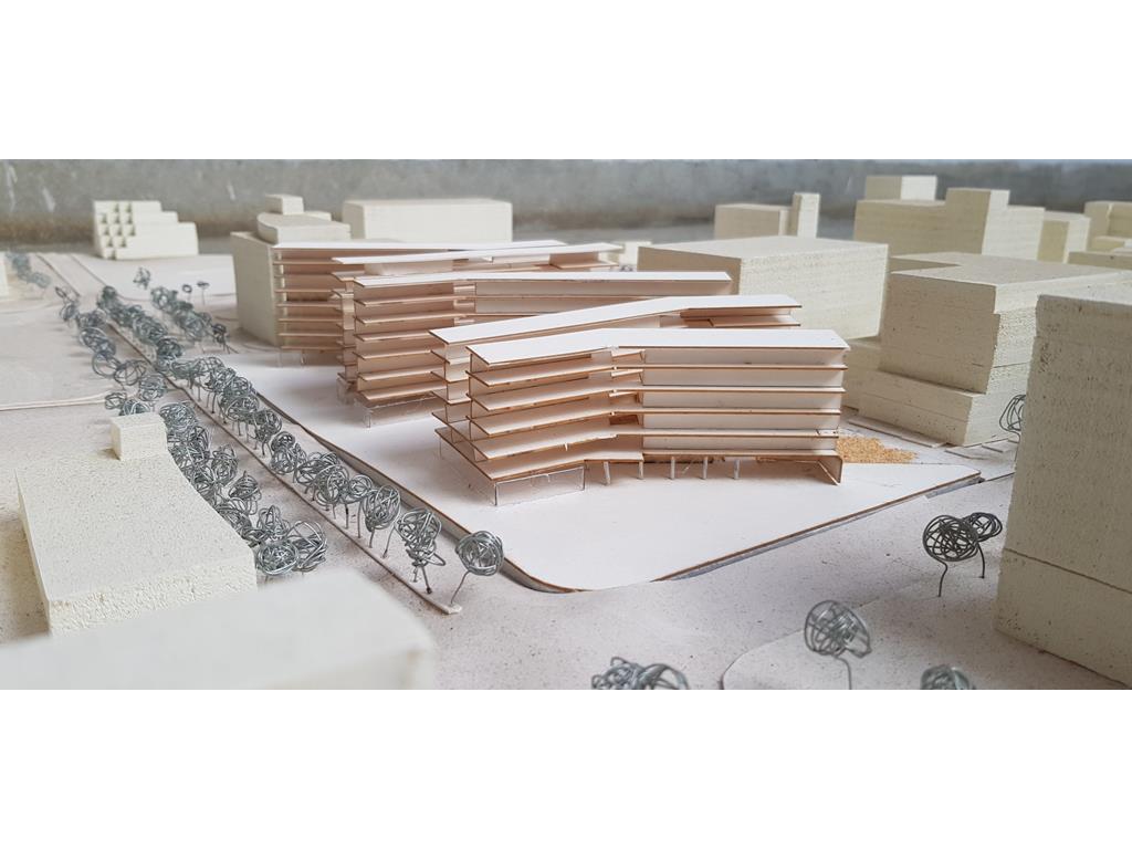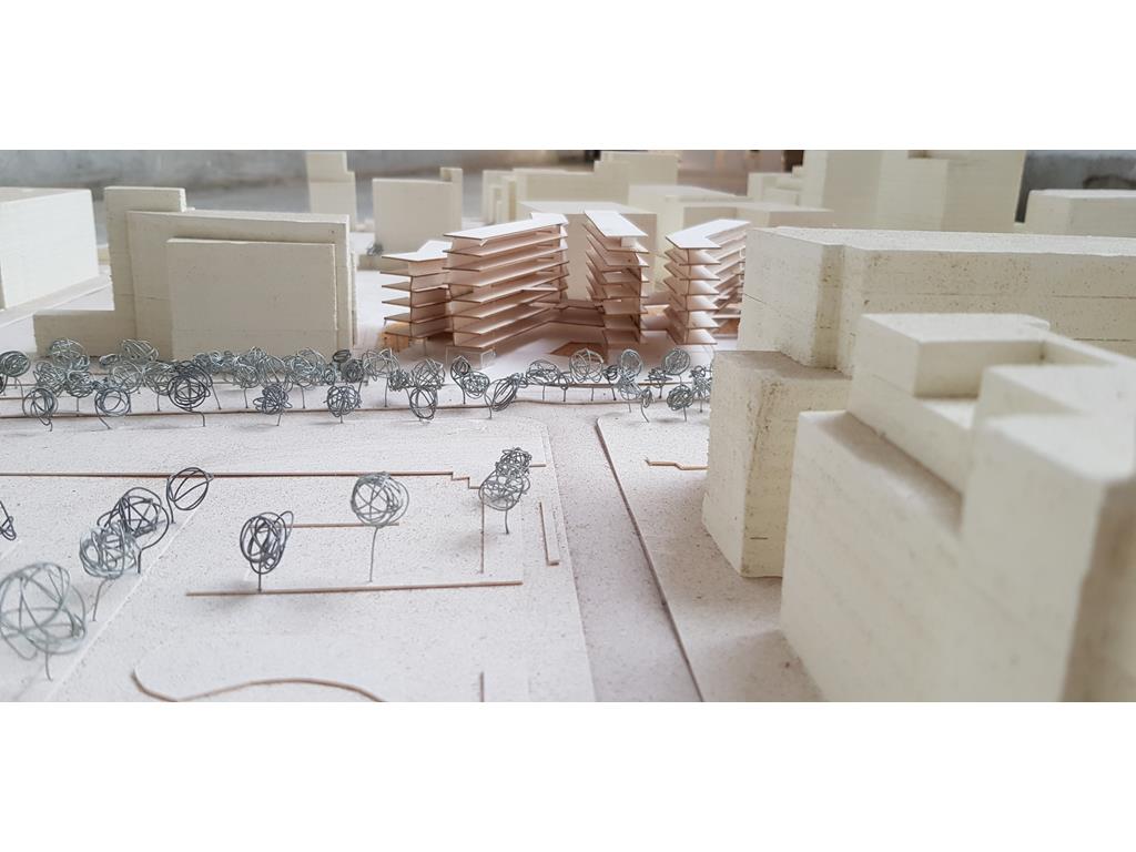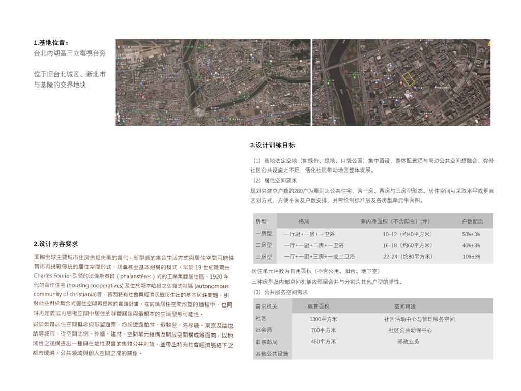 那次的設計練習選擇臺北基隆河以北的商業用地作為300戶社會公宅的基地。基地與臺北舊居住脈絡相隔甚遠,且處於新興的空曠商業辦公地帶。對我來說,這個狀況意味著無法再從基地脈絡上尋找操作的切入點,而需要自行定義基地特質以外的操作對象。