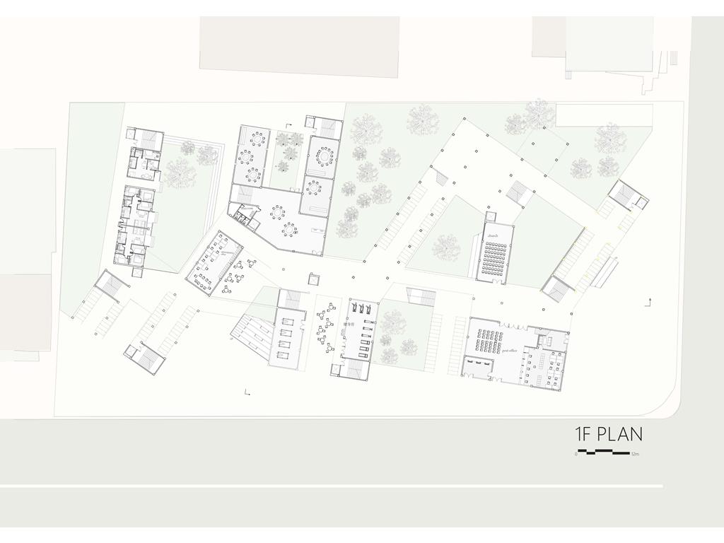 將不同層級機能空間通過虛體空間的張合折疊于各樓層的動線焦點,與廣場和串接通道共構房群內街巷體系,承載臺北特質的生活脈絡。