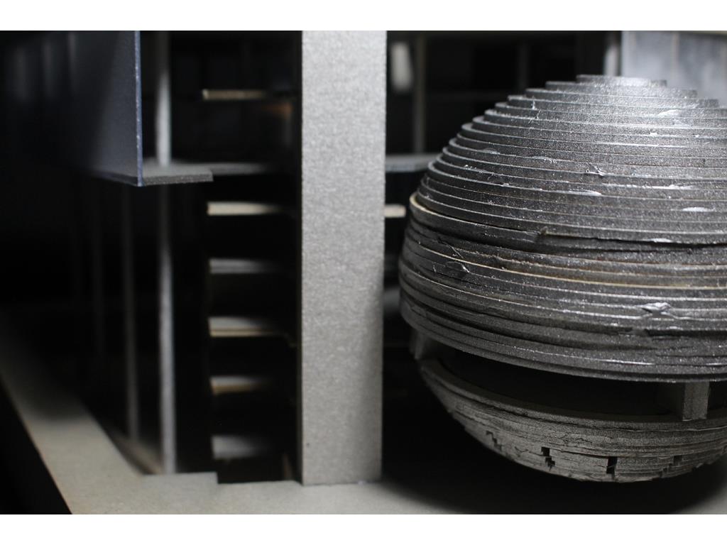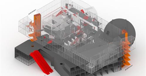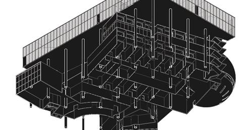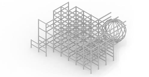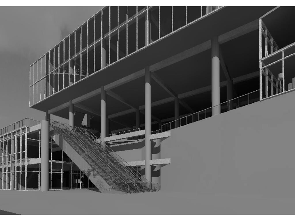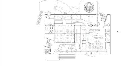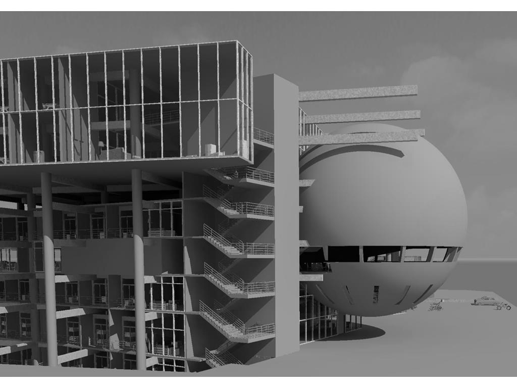 上方創客中心的公共性機能和下方商場和旅店的公共性機能都放置在中間,這個空間即為創客烏托邦面對到都市的中介空間。上下兩部分,用形體和結構系統區分開來,上方用一個純粹的量體來象征新秩序的建立;下方回應中區都市紋理,用破碎分割的量體和基地四周的街道相連,因為對於中區來說,只有在街道上日常生活才是活生生的。