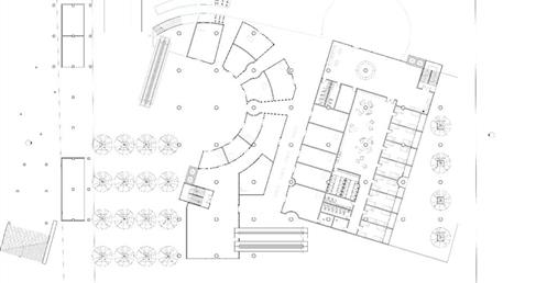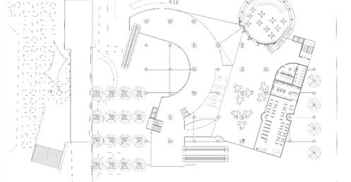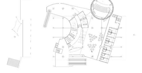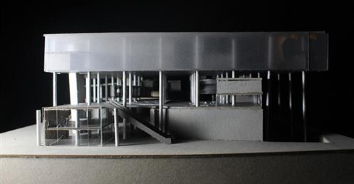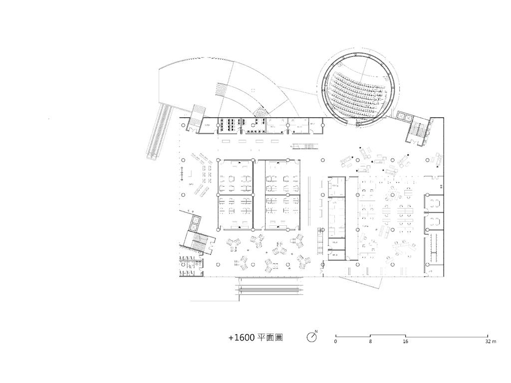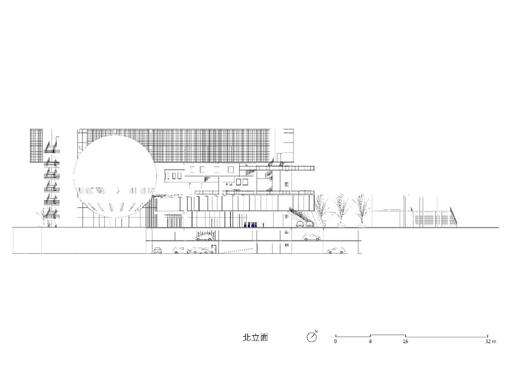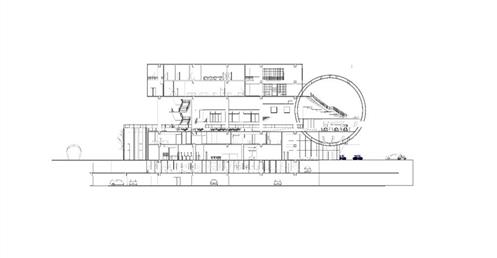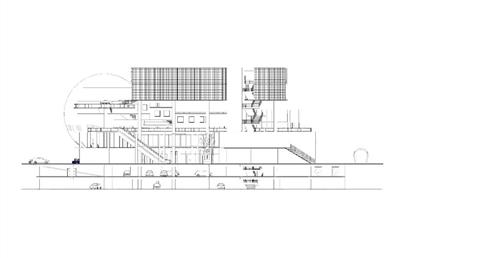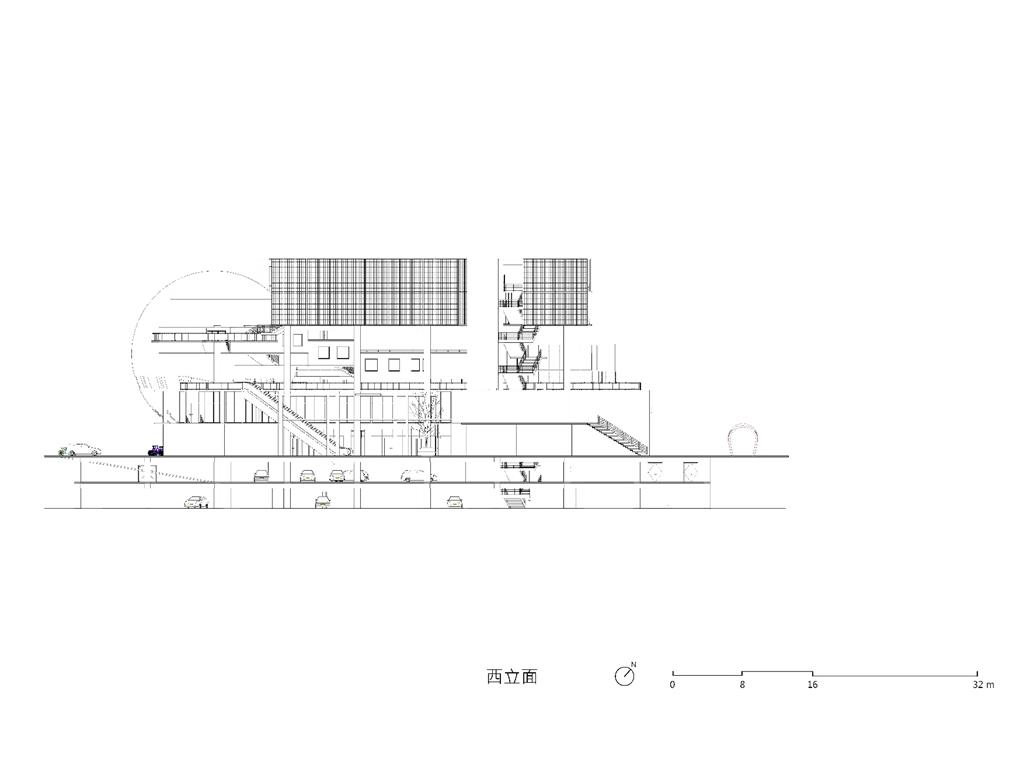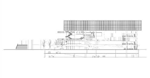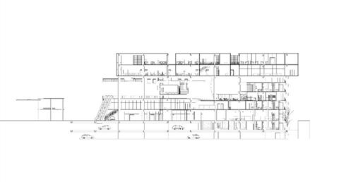 面對到這樣一個巨大的街廓,我將建築量體配置在剖面上橫向劈開,上下分別用不同造型的量體承載不同機能,中間則透過留出一個巨大的平台,為都市引入一個巨大的差異的同時,為中區帶來一個大尺度、高密度活動發生的公共空間。
