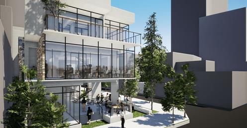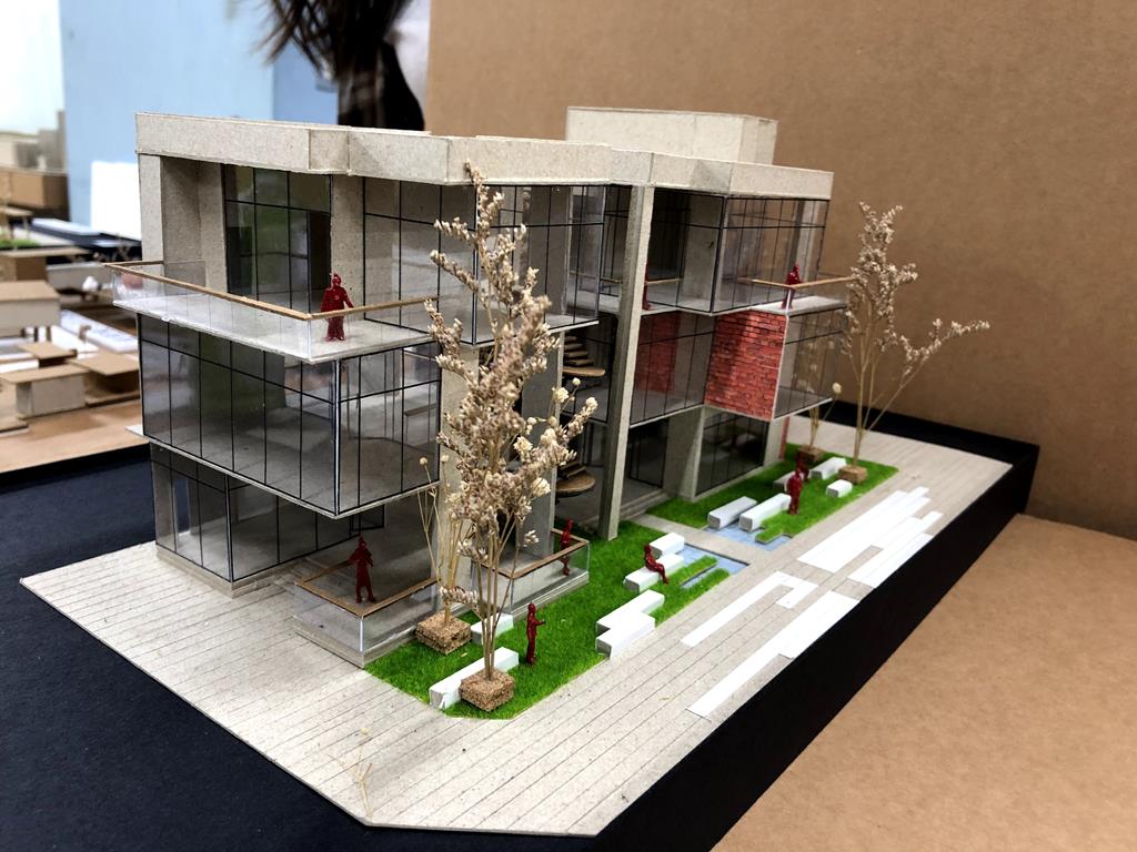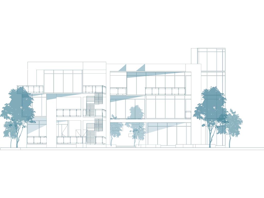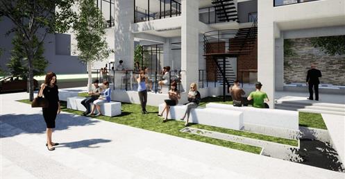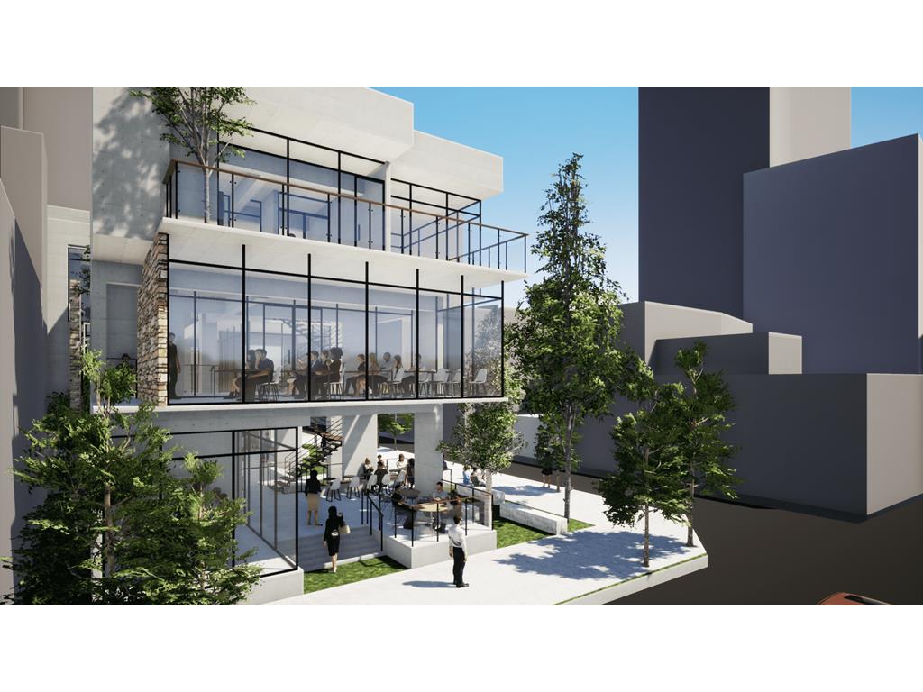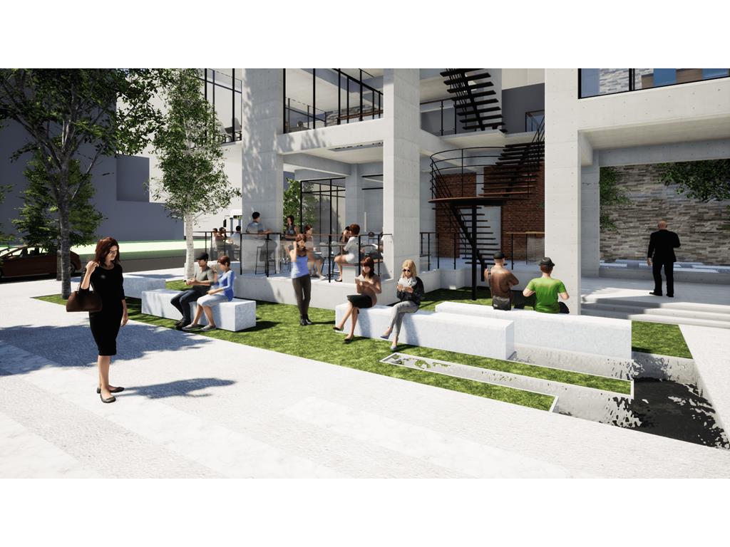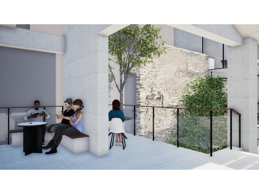 的意象;量體入口處則設置水牆,帶來聽覺上的刺激,同時軟化都市空間。