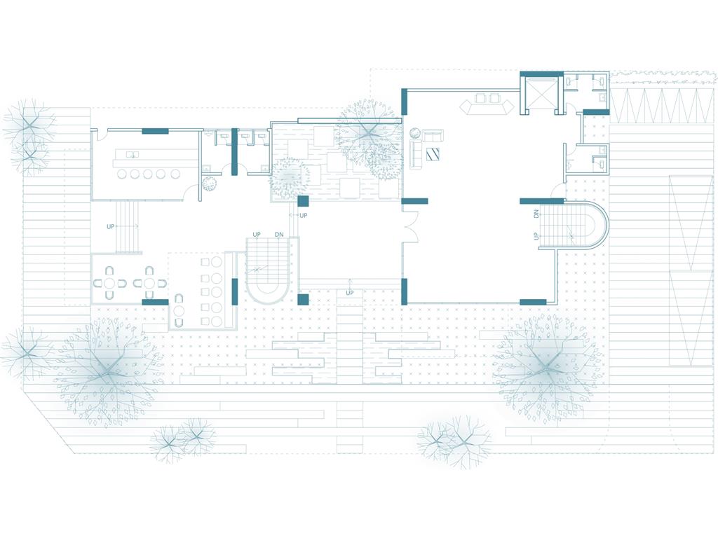4. 見若水:利用玻璃的透明性將光線滲透進量體,以及室內外人群視線的滲透;配置上則將