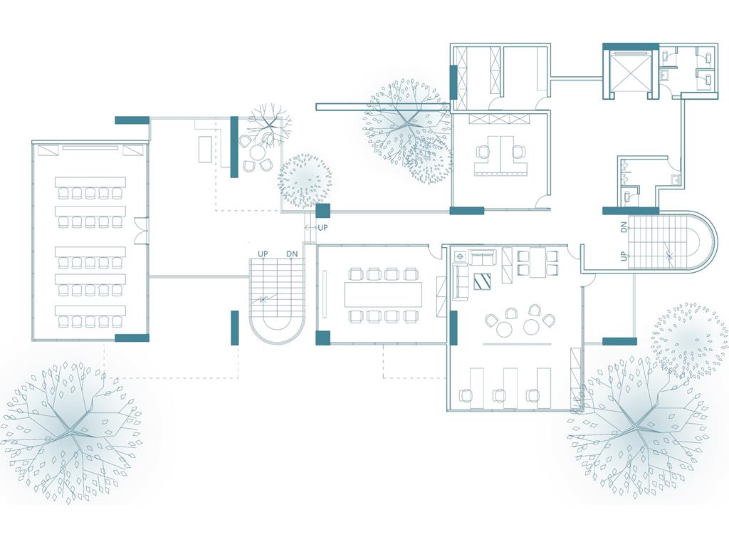 事務所空間以及鄰里空間相互滲透、連接。