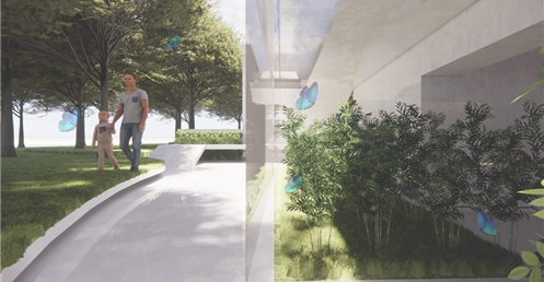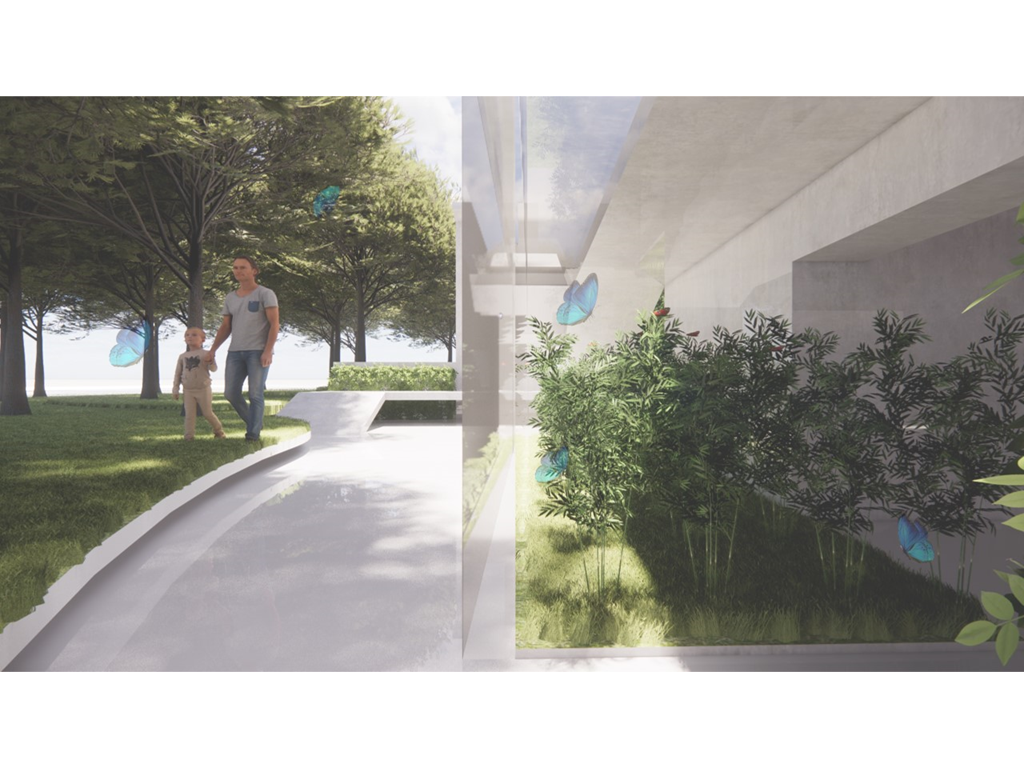 設計理念旨在將大自然融入日常居民的生活中,同時提醒每一位居民環境生態保育的重要性,以「誘蝶計畫」為核心,營造一個能夠延續居民與綠植間關係的社區,並在城市中提供一個令人難忘的生態體驗之過程。
