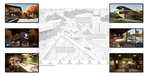 當然成果不免引發一些話題性;如Starbucks,有些人可能認為這個品牌代表外來文化。不過當一個外來文化成功的與你我達到一個平衡甚至帶來效益時,我們就應該勇於嘗試。而做為配角的這個小型Green Structure Shop根據可行性以及整體建築的氛圍而言,與Starbucks的整體形象有著非常好的默契。